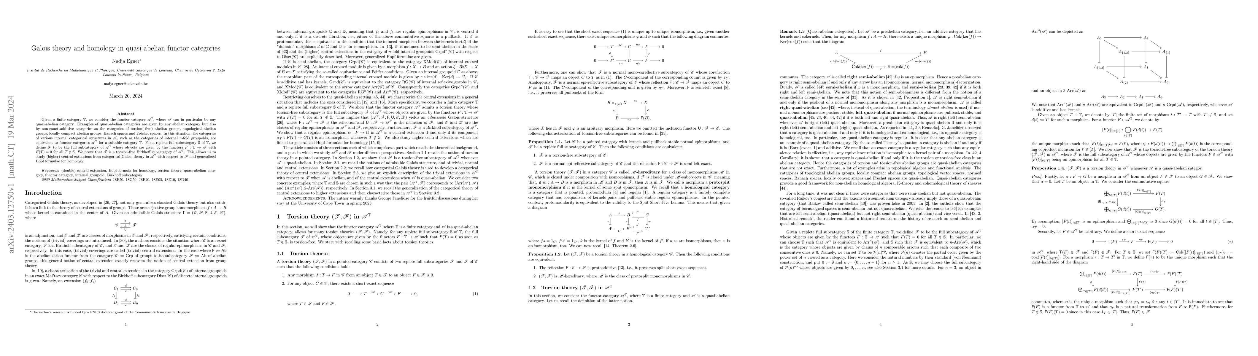 This paper investigates functor categories [T,A] where A is a quasi-abelian category, exploring internal categorical structures and their equivalence to these functor categories. It proves that a certain full subcategory F within [T,A] is a torsion-free Birkhoff subcategory, facilitating the study of central extensions and generalized Hopf formulae for homology in the context of categorical Galois theory.