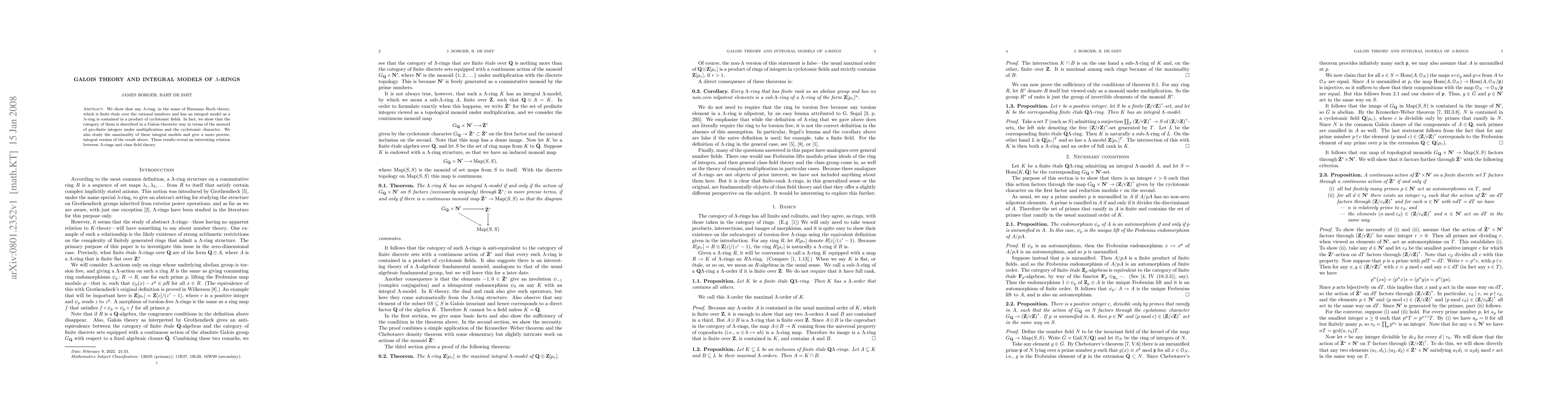 We show that any Lambda-ring, in the sense of Riemann-Roch theory, which is finite etale over the rational numbers and has an integral model as a Lambda-ring is contained in a product of cyclotomic fields. In fact, we show that the category of them is described in a Galois-theoretic way in terms of the monoid of pro-finite integers under multiplication and the cyclotomic character. We also study the maximality of these integral models and give a more precise, integral version of the result above. These results reveal an interesting relation between Lambda-rings and class field theory.