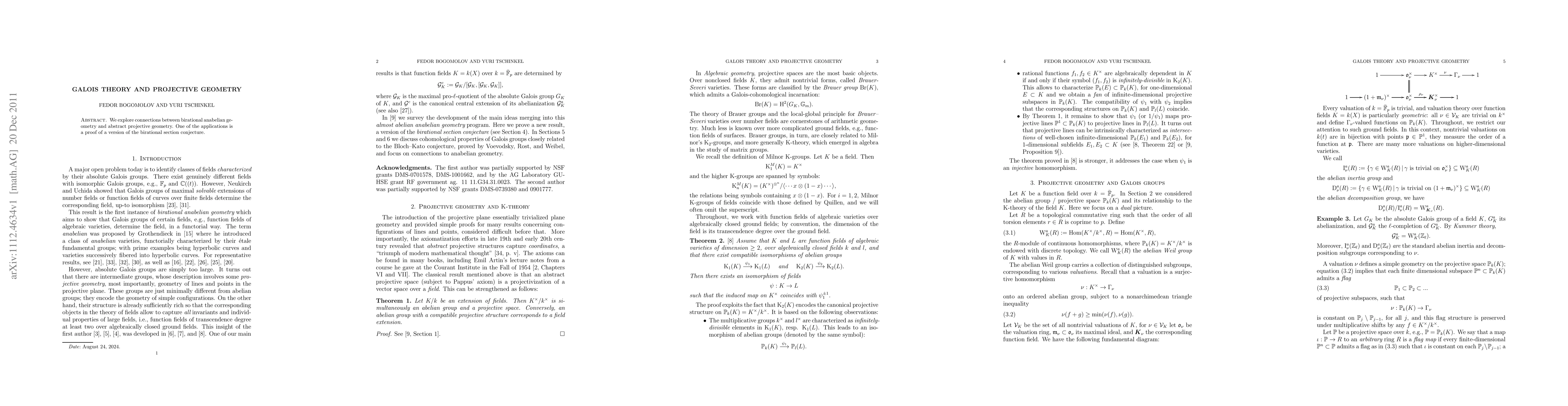 This paper explores connections between birational anabelian geometry and abstract projective geometry, proving a version of the birational section conjecture.