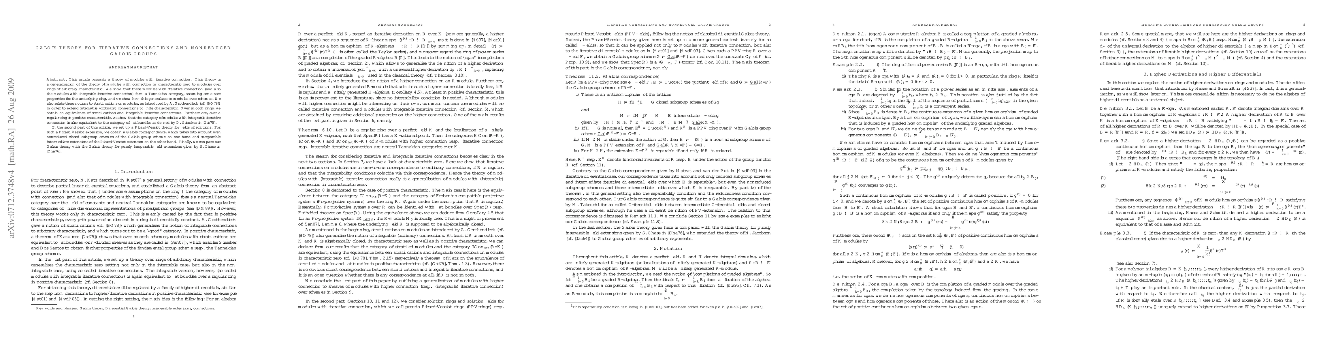 This paper develops a generalized theory of modules with iterative connection over rings of any characteristic, showing they form a Tannakian category and relate to stratifications. It also establishes a Picard-Vessiot theory for fields of solutions, introducing a Galois correspondence that accounts for nonreduced Galois groups and inseparable extensions.