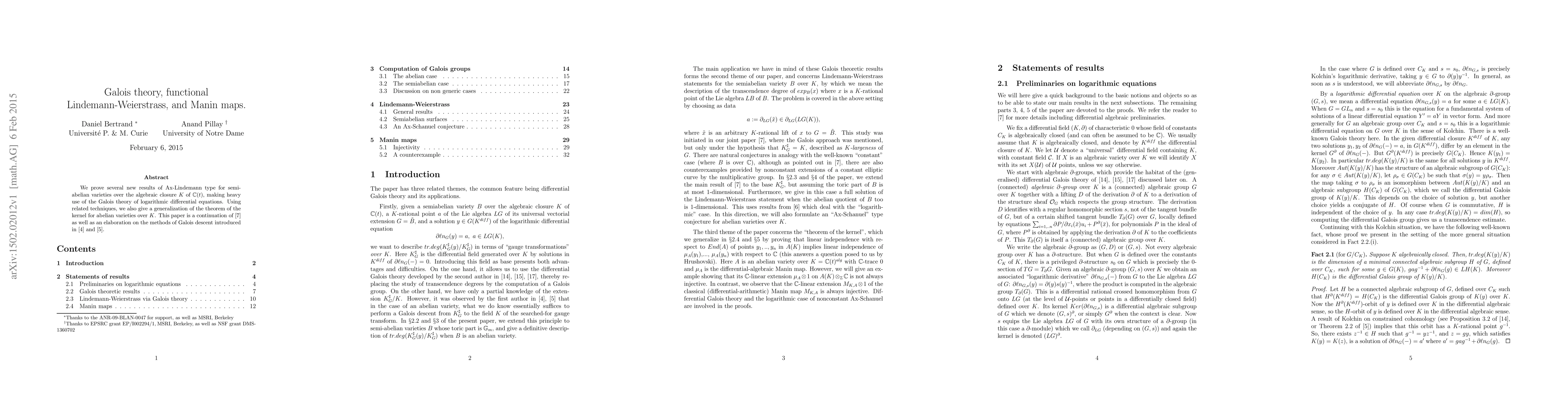 This paper establishes new Ax-Lindemann results for semiabelian varieties over the algebraic closure of \( \mathbb{C}(t) \), employing Galois theory of logarithmic differential equations. It also generalizes the kernel theorem for abelian varieties over this field.