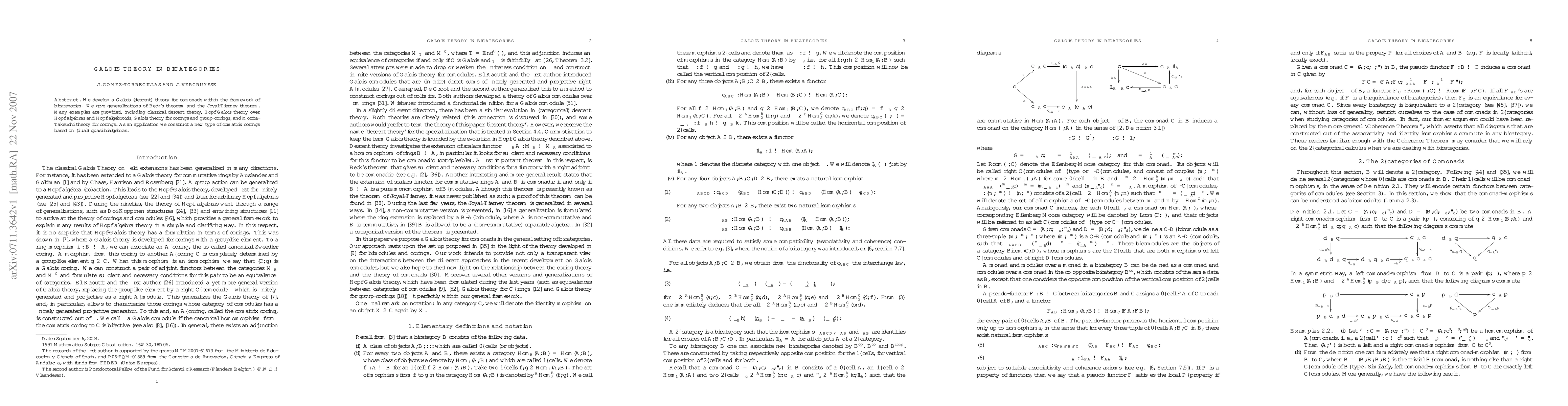 The paper develops a Galois theory for comonads in bicategories, generalizing Beck's and Joyal-Tierney theorems, and applies it to various examples like Hopf-Galois theory and Morita-Takeuchi theory, culminating in the construction of comatrix corings based on quasi bialgebras.