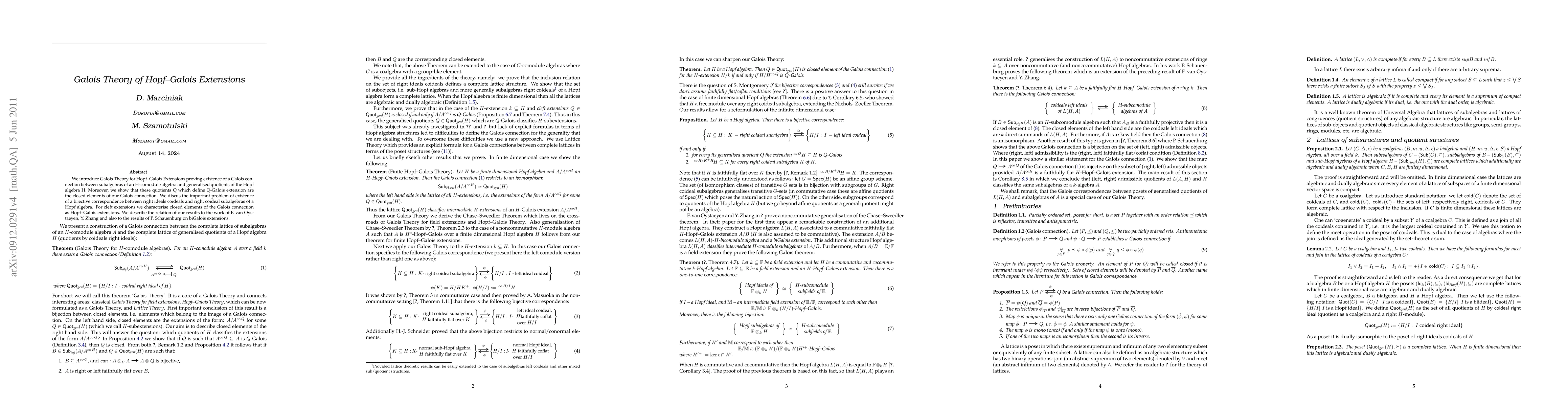 This paper develops Galois Theory for Hopf-Galois extensions, establishing a Galois connection between subalgebras of an H-comodule algebra and generalised quotients of the Hopf algebra H, with closed elements defining Q-Galois extensions. It generalises results from Hopf-Galois Theory and discusses the relationship with biGalois extensions.