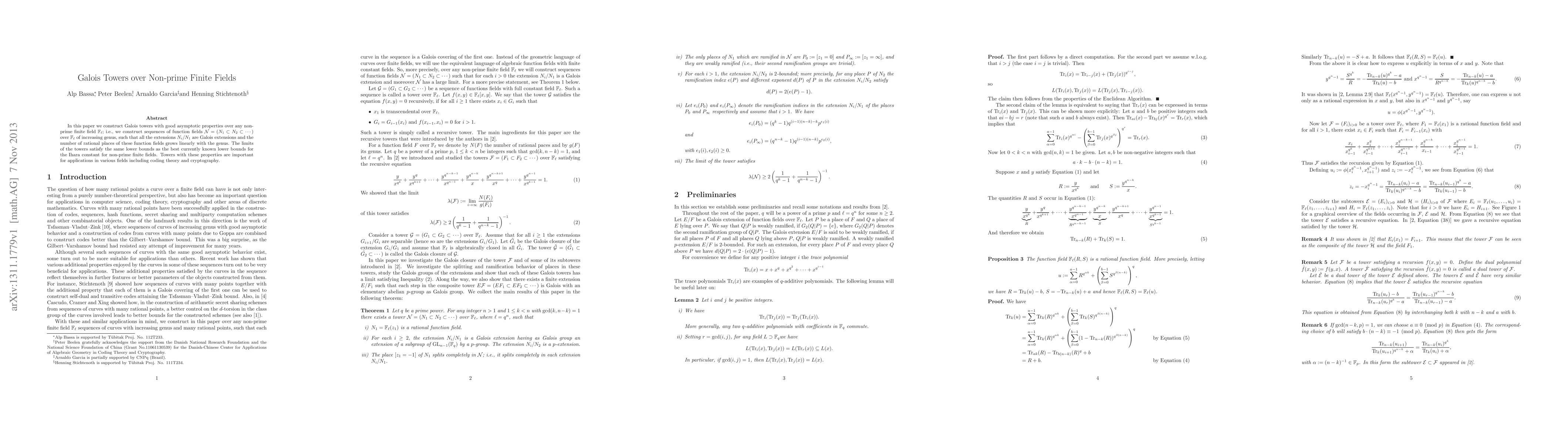 This paper constructs Galois towers over non-prime finite fields $\mathbb F_{\ell}$ with sequences of function fields of increasing genus, where all extensions are Galois and the number of rational places grows linearly with genus. These towers achieve the best known lower bounds for the Ihara constant, with applications in coding theory and cryptography.