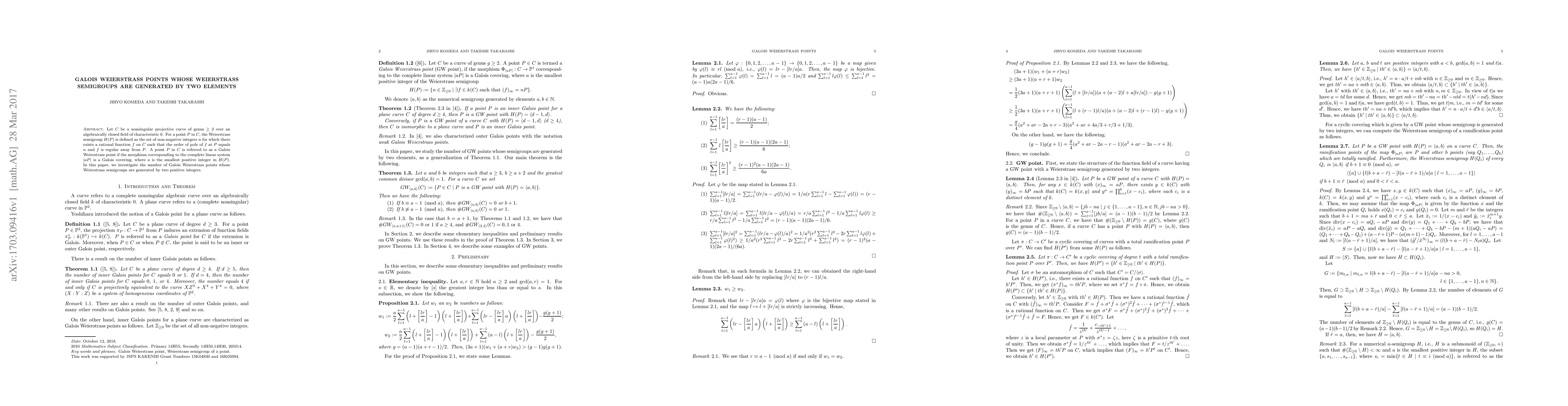 This paper explores the count of Galois Weierstrass points associated with Weierstrass semigroups that can be generated by exactly two positive integers. It provides insights into the structure and properties of such points in algebraic geometry.