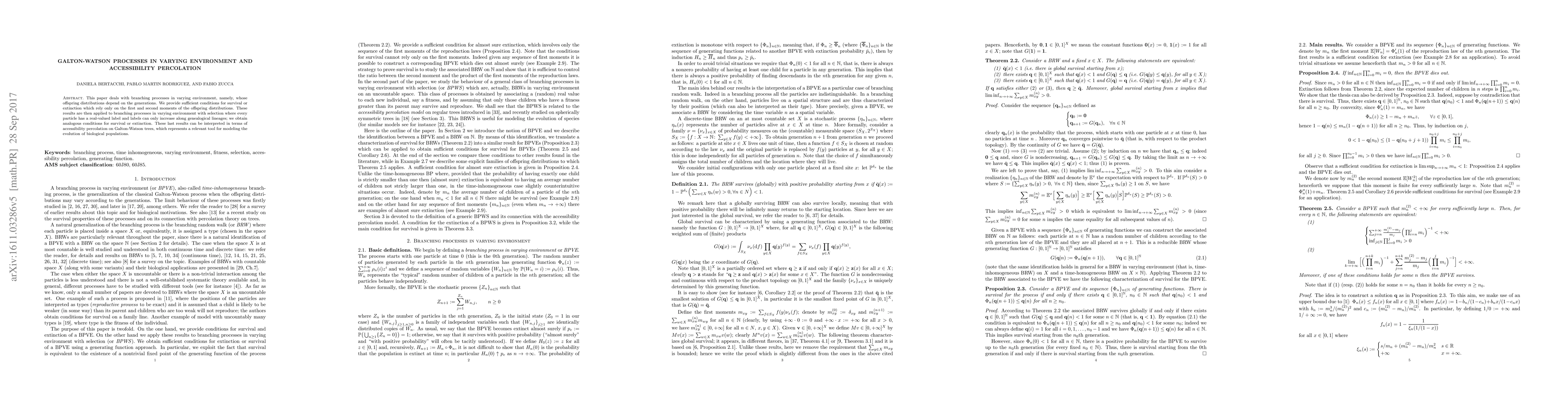 The paper analyzes Galton-Watson processes in varying environments, providing conditions for survival or extinction based on the first and second moments of offspring distributions. It extends these results to branching processes in varying environments with selection, interpreting them in terms of accessibility percolation on Galton-Watson trees.