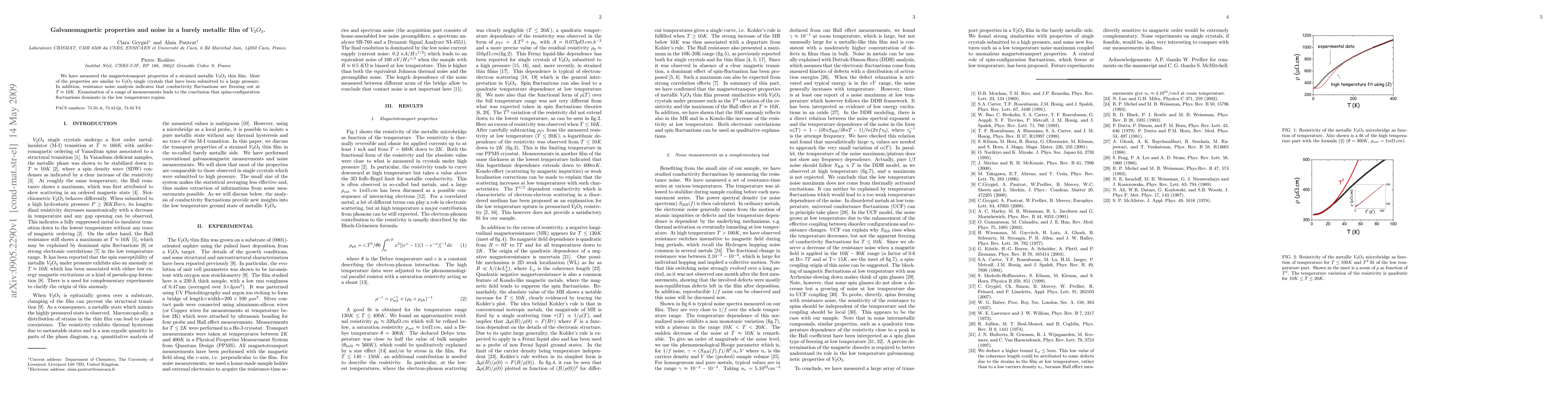 We have measured the magnetotransport properties of a strained metallic V2O3 thin film. Most of the properties are similar to V2O3 single crystals that have been submitted to a large pressure. In addition, resistance noise analysis indicates that conductivity fluctuations are freezing out at T\approx 10K. Examination of a range of measurements leads to the conclusion that spins-configuration fluctuations dominate in the low temperature regime.
