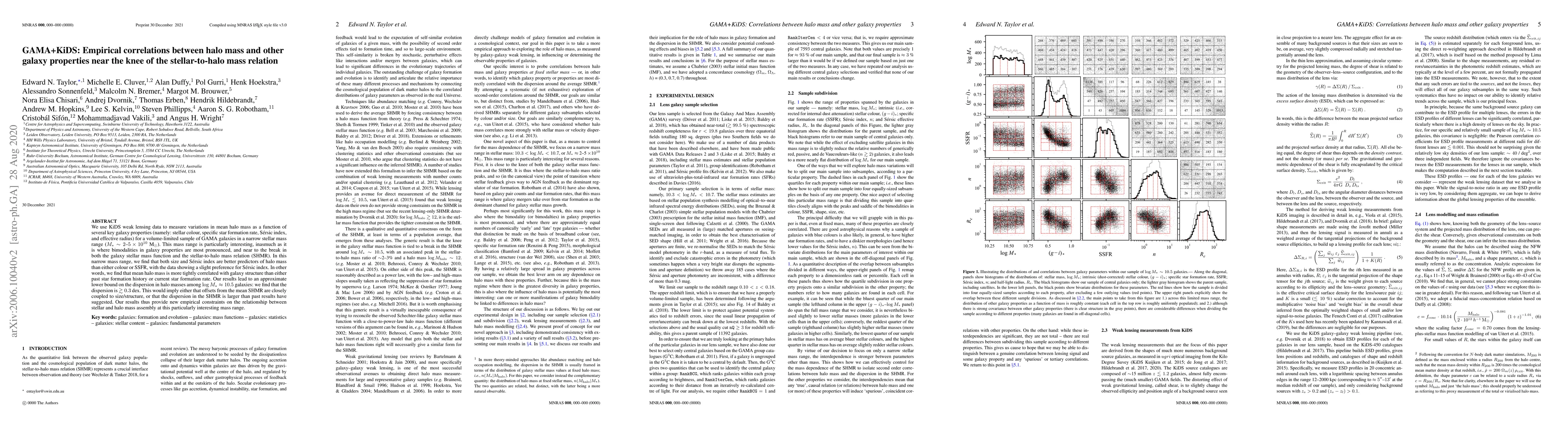 We use KiDS weak lensing data to measure variations in mean halo mass as a function of several key galaxy properties (namely: stellar colour, specific star formation rate, Sersic index, and effective radius) for a volume-limited sample of GAMA galaxies in a narrow stellar mass range ($M_* \sim 2$--$5 \times 10^{10}$ Msol). This mass range is particularly interesting, inasmuch as it is where bimodalities in galaxy properties are most pronounced, and near to the break in both the galaxy stellar mass function and the stellar-to-halo mass relation (SHMR). In this narrow mass range, we find that both size and Sersic index are better predictors of halo mass than either colour or SSFR, with the data showing a slight preference for Sersic index. In other words, we find that mean halo mass is more tightly correlated with galaxy structure than either past star formation history or current star formation rate. Our results lead to an approximate lower bound on the dispersion in halo masses among $\log M_* \approx {10.5}$ galaxies: we find that the dispersion is $\gtrsim 0.3$ dex. This would imply either that offsets from the mean SHMR are closely coupled to size/structure, or that the dispersion in the SHMR is larger than past results have suggested. Our results thus provide new empirical constraints on the relationship between stellar and halo mass assembly at this particularly interesting mass range.