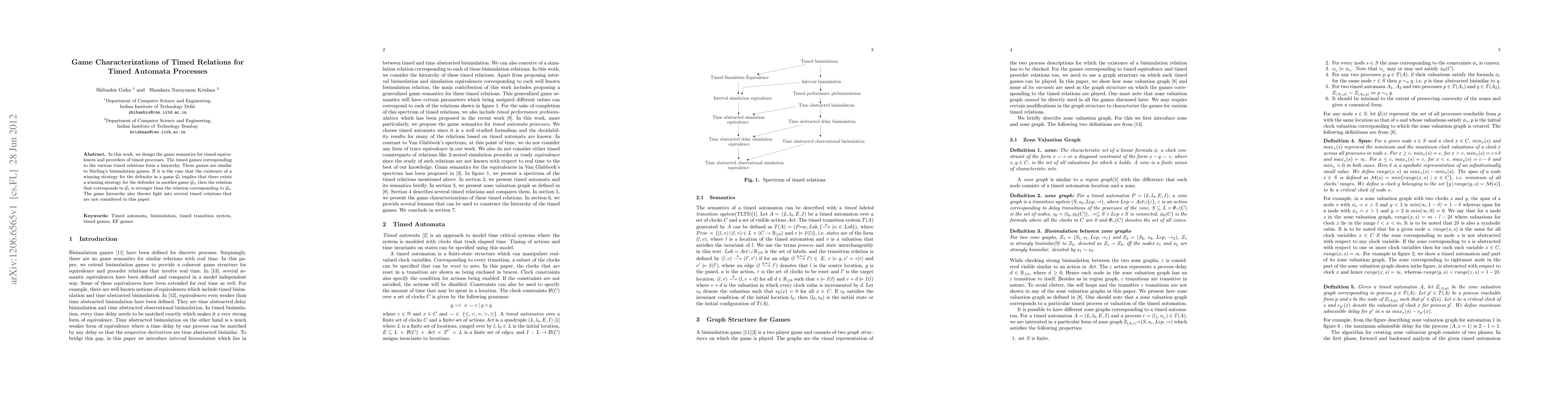 In this work, we design the game semantics for timed equivalences and preorders of timed processes. The timed games corresponding to the various timed relations form a hierarchy. These games are similar to Stirling's bisimulation games. If it is the case that the existence of a winning strategy for the defender in a game ${\cal G}_1$ implies that there exists a winning strategy for the defender in another game ${\cal G}_2$, then the relation that corresponds to ${\cal G}_1$ is stronger than the relation corresponding to ${\cal G}_2$. The game hierarchy also throws light into several timed relations that are not considered in this paper.