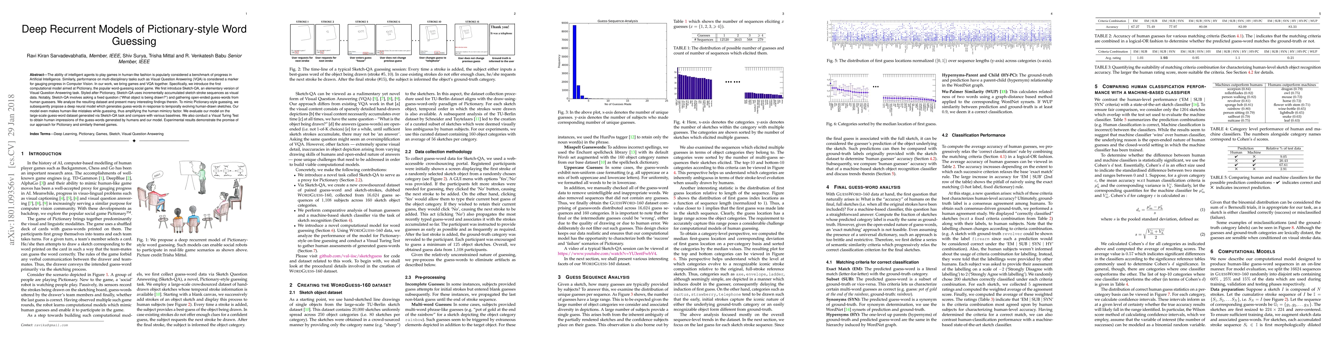 This paper introduces a deep recurrent model for a Pictionary-style word guessing game, proposing Sketch-QA to simulate the visual question answering task using sketch strokes. The model generates human-like guess-words and makes mistakes, evaluated against human guesses and baselines, showing potential for mimicking human-like Pictionary play.