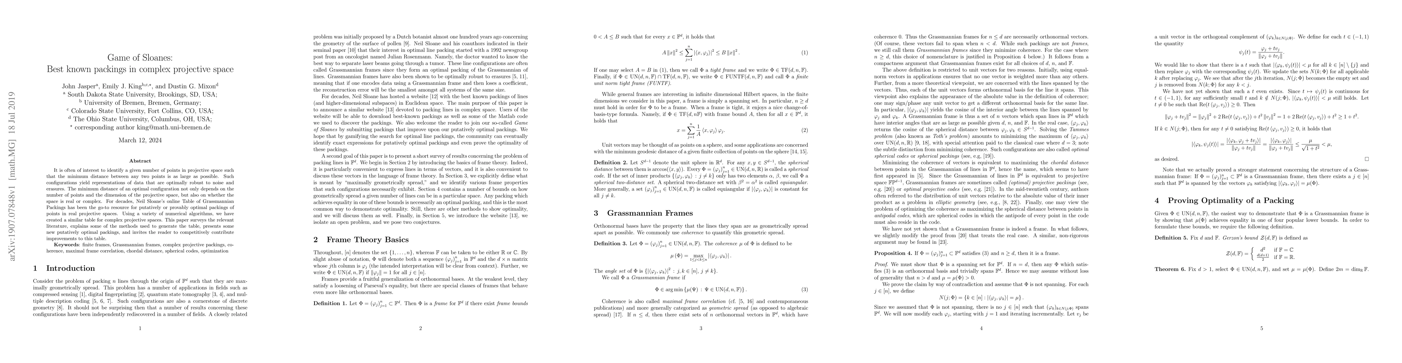 Researchers created a table of optimal packings in complex projective space, improving on Neil Sloane's online resource for real projective spaces. They present new configurations and invite others to contribute improvements, advancing data robustness against noise and erasures.