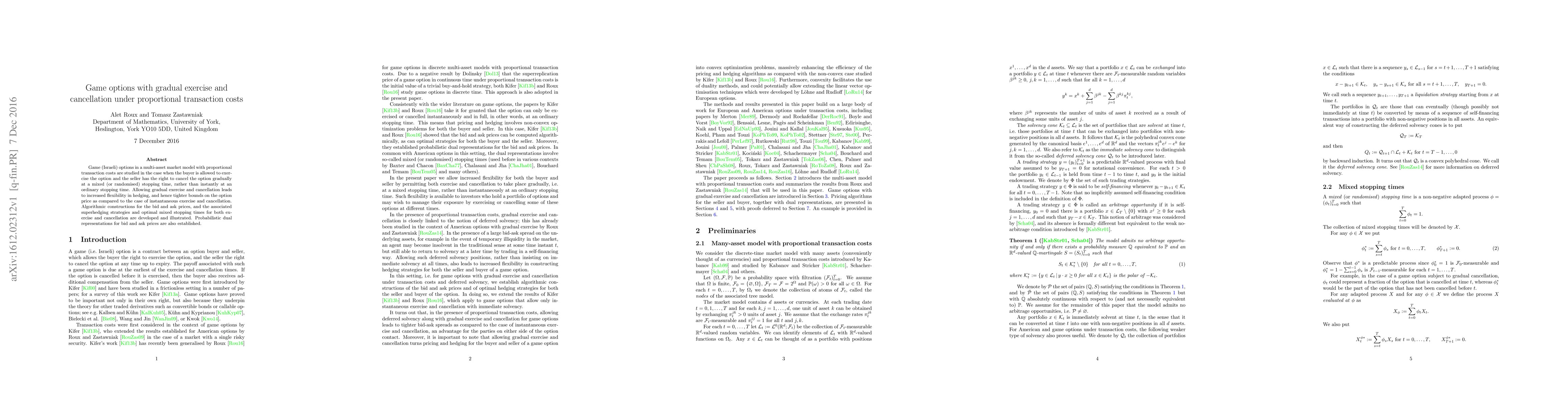 Game (Israeli) options in a multi-asset market model with proportional transaction costs are studied in the case when the buyer is allowed to exercise the option and the seller has the right to cancel the option gradually at a mixed (or randomised) stopping time, rather than instantly at an ordinary stopping time. Allowing gradual exercise and cancellation leads to increased flexibility in hedging, and hence tighter bounds on the option price as compared to the case of instantaneous exercise and cancellation. Algorithmic constructions for the bid and ask prices, and the associated superhedging strategies and optimal mixed stopping times for both exercise and cancellation are developed and illustrated. Probabilistic dual representations for bid and ask prices are also established.
