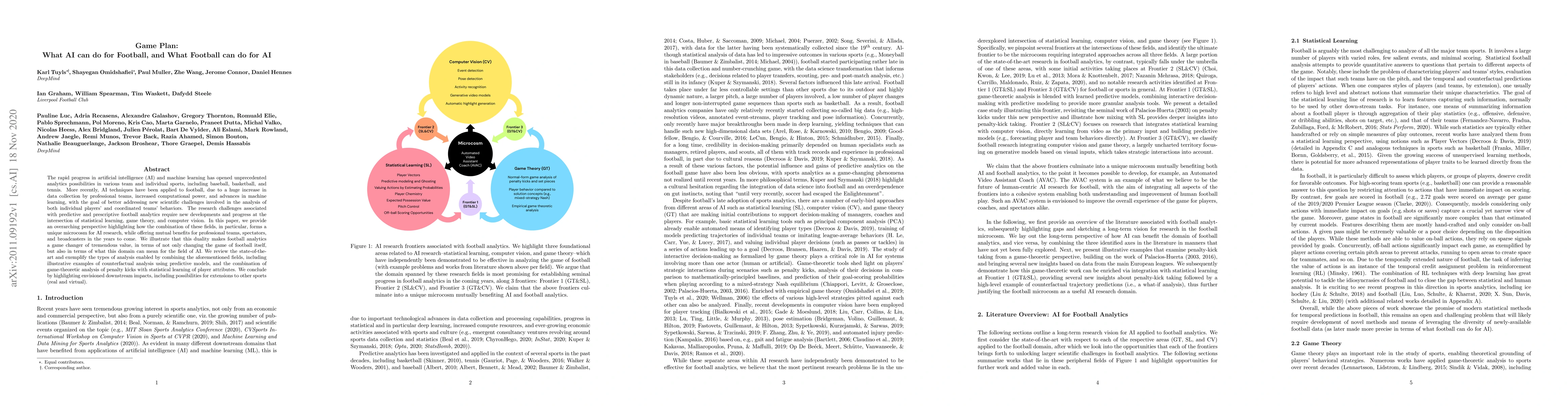 The rapid progress in artificial intelligence (AI) and machine learning has opened unprecedented analytics possibilities in various team and individual sports, including baseball, basketball, and tennis. More recently, AI techniques have been applied to football, due to a huge increase in data collection by professional teams, increased computational power, and advances in machine learning, with the goal of better addressing new scientific challenges involved in the analysis of both individual players' and coordinated teams' behaviors. The research challenges associated with predictive and prescriptive football analytics require new developments and progress at the intersection of statistical learning, game theory, and computer vision. In this paper, we provide an overarching perspective highlighting how the combination of these fields, in particular, forms a unique microcosm for AI research, while offering mutual benefits for professional teams, spectators, and broadcasters in the years to come. We illustrate that this duality makes football analytics a game changer of tremendous value, in terms of not only changing the game of football itself, but also in terms of what this domain can mean for the field of AI. We review the state-of-the-art and exemplify the types of analysis enabled by combining the aforementioned fields, including illustrative examples of counterfactual analysis using predictive models, and the combination of game-theoretic analysis of penalty kicks with statistical learning of player attributes. We conclude by highlighting envisioned downstream impacts, including possibilities for extensions to other sports (real and virtual).