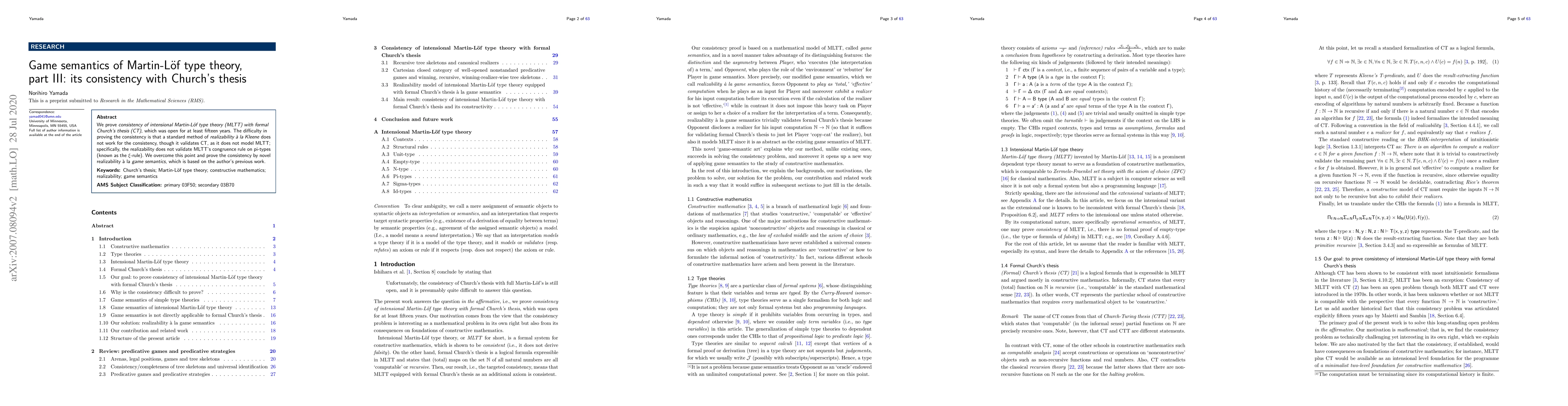 The research employs game semantics to prove the consistency of intensional Martin-Löf type theory (MLTT) with Church's thesis (CT), utilizing novel realizability based on game semantics to overcome the limitations of standard realizability methods.
