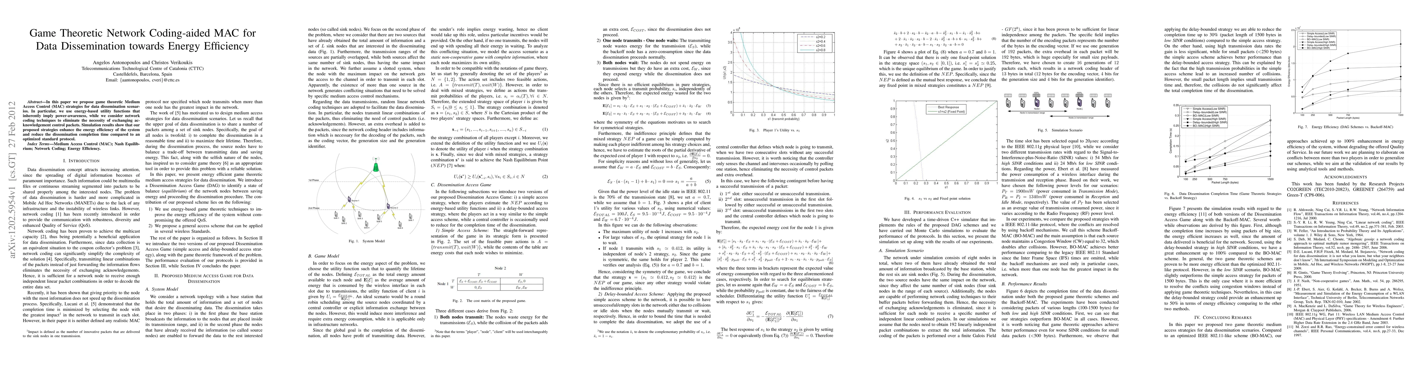 Researchers propose game-theoretic MAC strategies to improve energy efficiency in data dissemination systems, leveraging network coding to reduce acknowledgement packets.