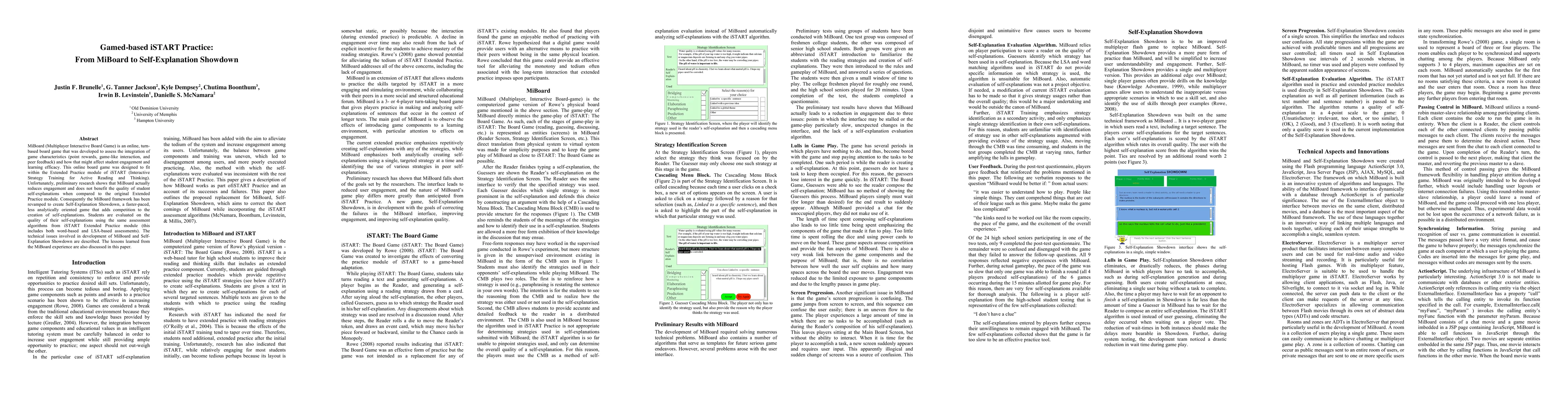 MiBoard (Multiplayer Interactive Board Game) is an online, turnbased board game that was developed to assess the integration of game characteristics (point rewards, game-like interaction, and peer feedback) and how that might affect student engagement and learning efficacy. This online board game was designed to fit within the Extended Practice module of iSTART (Interactive Strategy Training for Active Reading and Thinking). Unfortunately, preliminary research shows that MiBoard actually reduces engagement and does not benefit the quality of student self-explanations when compared to the original Extended Practice module. Consequently the MiBoard framework has been revamped to create Self-Explanation Showdown, a faster-paced, less analytically oriented game that adds competition to the creation of self-explanations. Students are evaluated on the quality of their self-explanations using the same assessment algorithms from iSTART Extended Practice module (this includes both word-based and LSA-based assessments). The technical issues involved in development of MiBoard and Self- Explanation Showdown are described. The lessons learned from the MiBoard experience are also discussed in this paper.