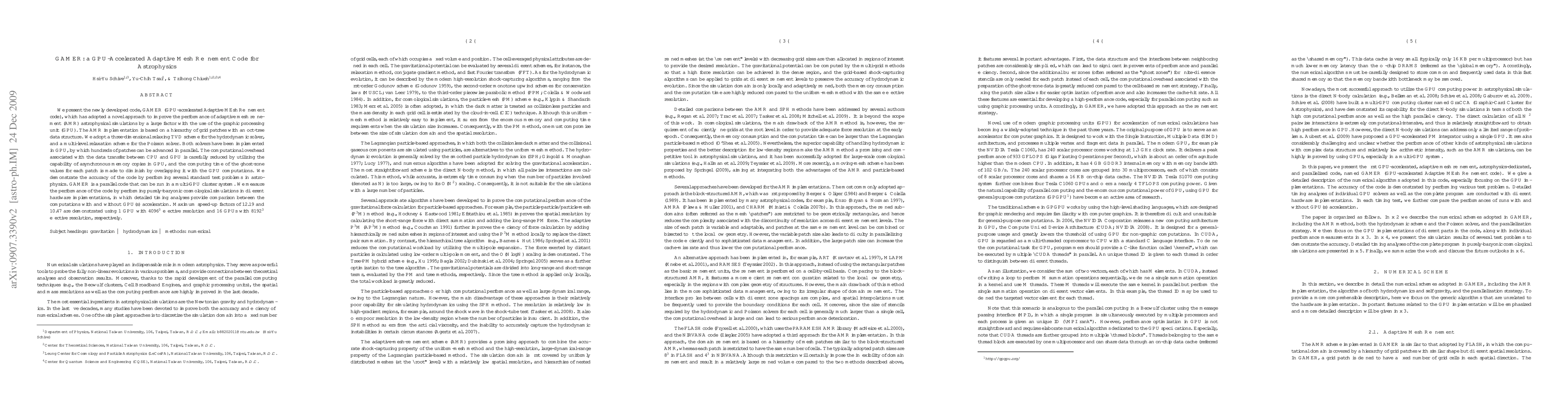 GAMER is a GPU-accelerated adaptive mesh refinement code designed to significantly enhance the performance of astrophysical simulations. It employs a GPU-based hierarchy of grid patches and asynchronous memory copies to minimize data transfer overhead, achieving speed-up factors of up to 12.19 with a single GPU and 10.47 with 16 GPUs.