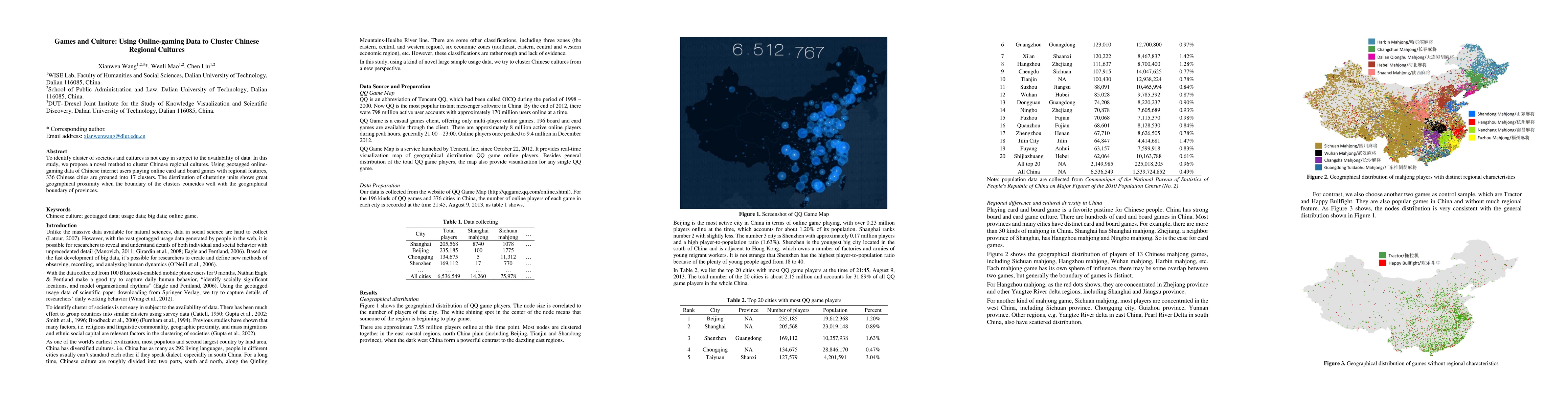 This study proposes a novel method to cluster Chinese regional cultures using geotagged online-gaming data, resulting in 17 clusters of 336 cities. The clusters' geographical proximity aligns well with provincial boundaries, indicating a strong correlation between gaming behavior and regional culture.
