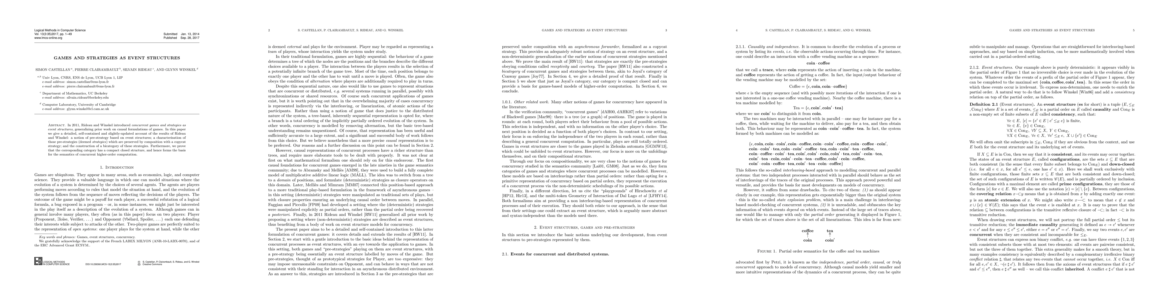 In 2011, Rideau and Winskel introduced concurrent games and strategies as event structures, generalizing prior work on causal formulations of games. In this paper we give a detailed, self-contained and slightly-updated account of the results of Rideau and Winskel: a notion of pre-strategy based on event structures; a characterisation of those pre-strategies (deemed strategies) which are preserved by composition with a copycat strategy; and the construction of a bicategory of these strategies. Furthermore, we prove that the corresponding category has a compact closed structure, and hence forms the basis for the semantics of concurrent higher-order computation.