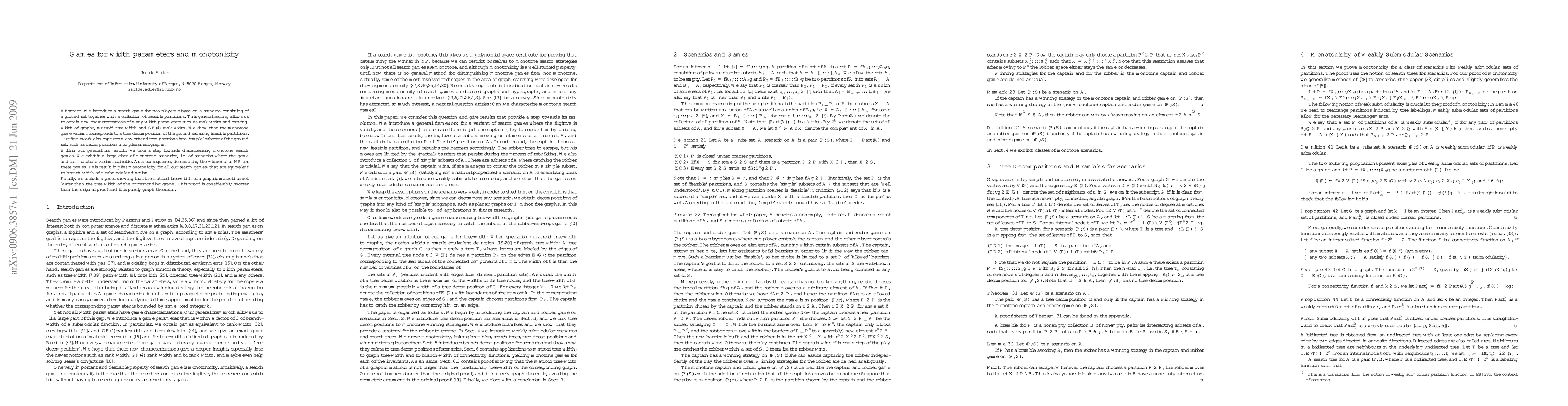 We introduce a search game for two players played on a "scenario" consisting of a ground set together with a collection of feasible partitions. This general setting allows us to obtain new characterisations of many width parameters such as rank-width and carving-width of graphs, matroid tree-width and GF(4)-rank-width. We show that the monotone game variant corresponds to a tree decomposition of the ground set along feasible partitions. Our framework also captures many other decompositions into "simple" subsets of the ground set, such as decompositions into planar subgraphs. Within our general framework, we take a step towards characterising monotone search games. We exhibit a large class of "monotone" scenarios, i.e. of scenarios where the game and its monotone variant coincide. As a consequence, determining the winner is in NP for these games. This result implies monotonicity for all our search games, that are equivalent to branch-width of a submodular function. Finally, we include a proof showing that the matroid tree-width of a graphic matroid is not larger than the tree-width of the corresponding graph. This proof is considerably shorter than the original proof and it is purely graph theoretic.