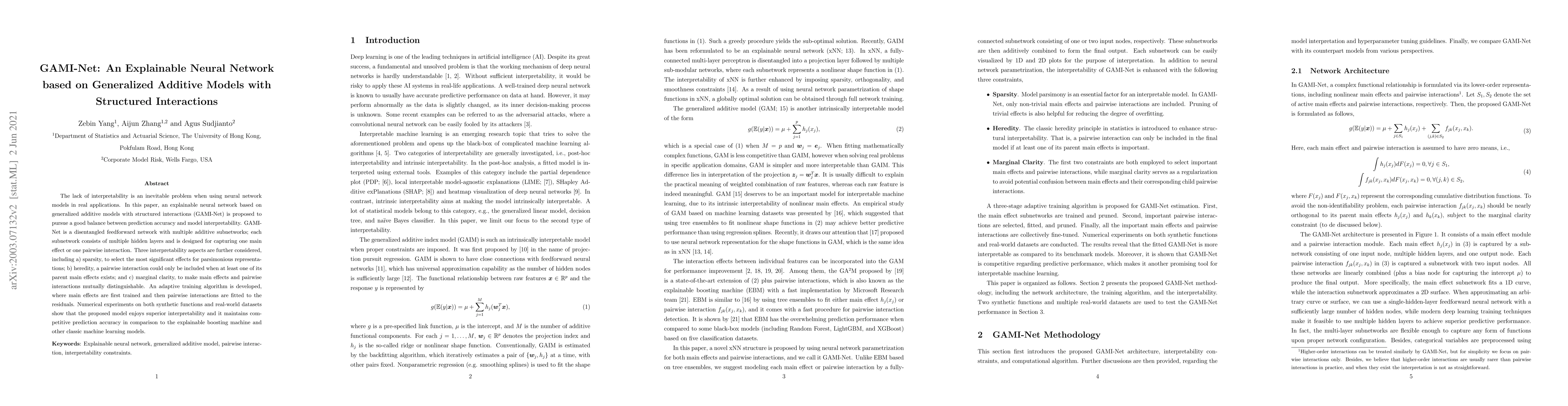GAMI-Net proposes an explainable neural network model that balances prediction accuracy with interpretability, achieving superior results in both synthetic functions and real-world datasets.