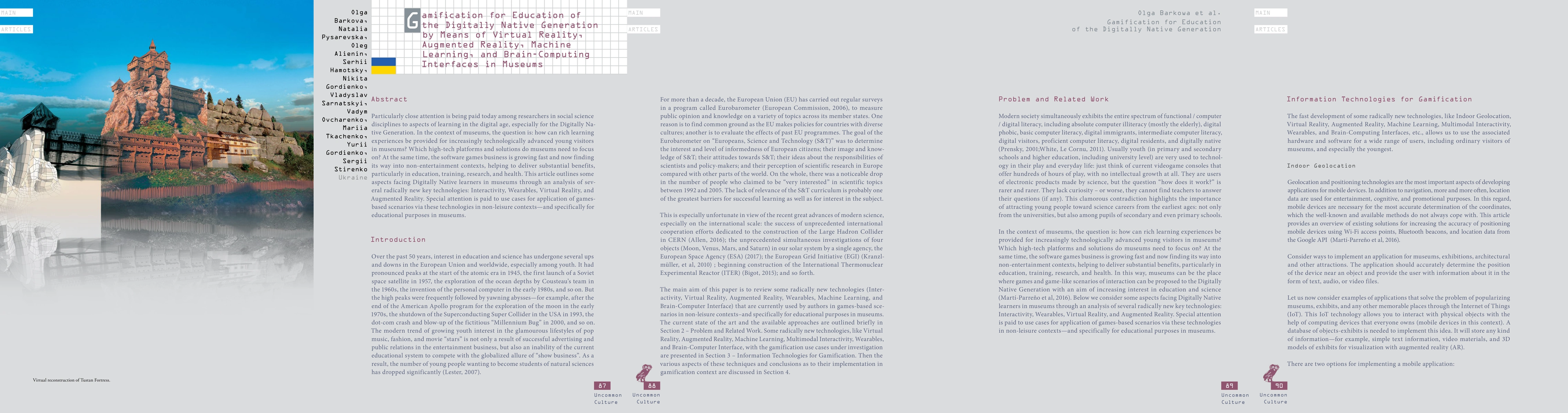 This paper explores how gamification using virtual reality, augmented reality, machine learning, and brain-computing interfaces can enhance educational experiences for the Digitally Native Generation in museums. It examines the potential of high-tech platforms and solutions to provide rich learning experiences for technologically advanced young visitors.