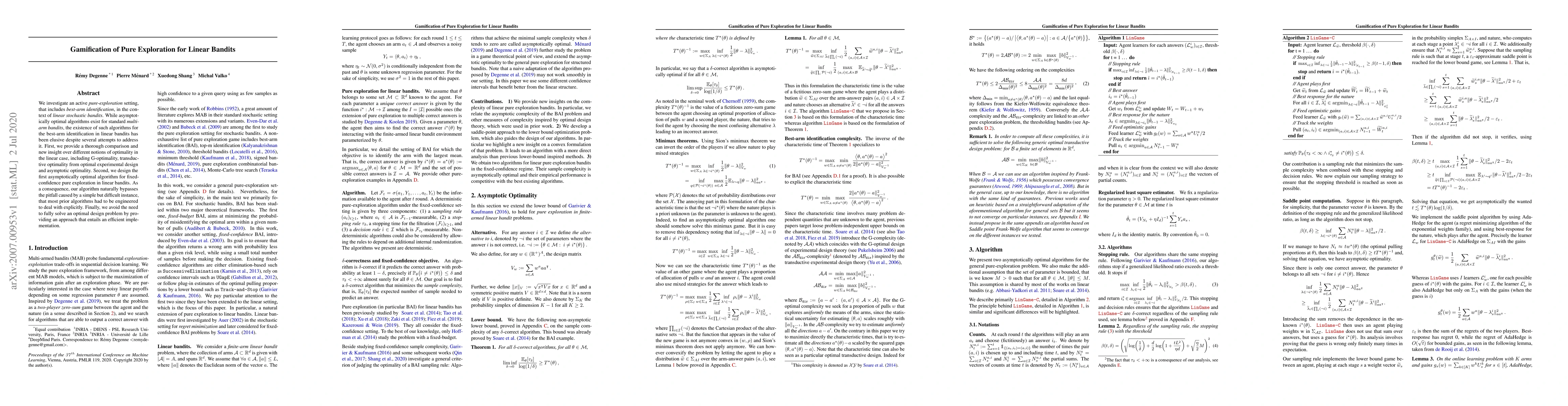 This paper develops the first asymptotically optimal algorithm for best-arm identification in linear stochastic bandits, addressing the challenge of pure exploration. It also provides insights into different notions of optimality and avoids the need for solving an optimal design problem through an efficient implementation.