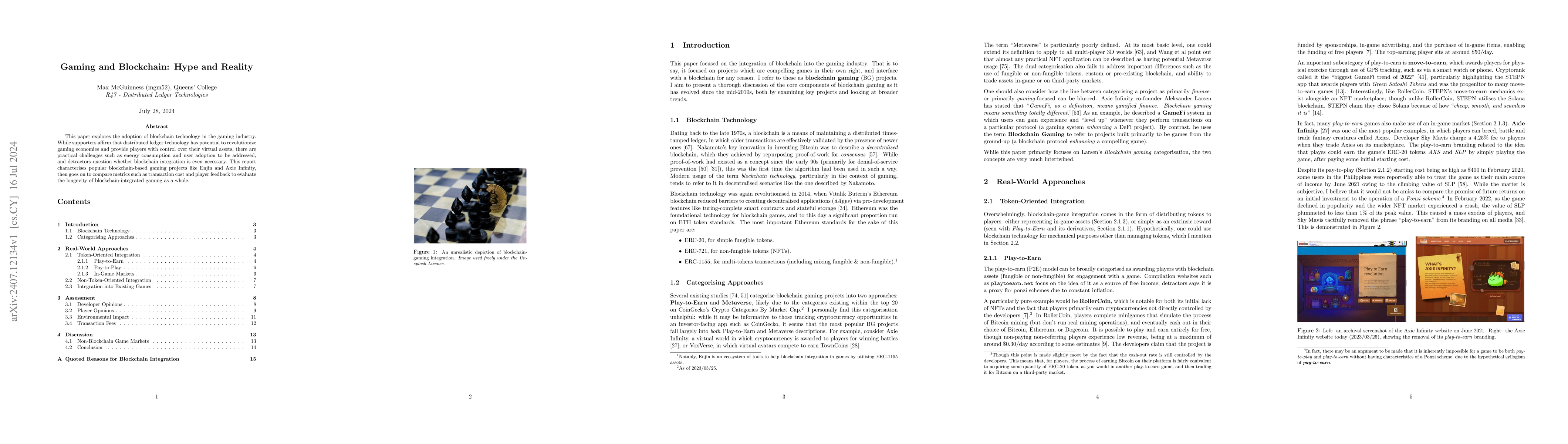 This paper explores the adoption of blockchain technology in the gaming industry. While supporters affirm that distributed ledger technology has potential to revolutionize gaming economies and provide players with control over their virtual assets, there are practical challenges such as energy consumption and user adoption to be addressed, and detractors question whether blockchain integration is even necessary. This report characterises popular blockchain-based gaming projects like Enjin and Axie Infinity, then compares metrics such as transaction cost and player feedback to evaluate the longevity of blockchain-integrated gaming as a whole.