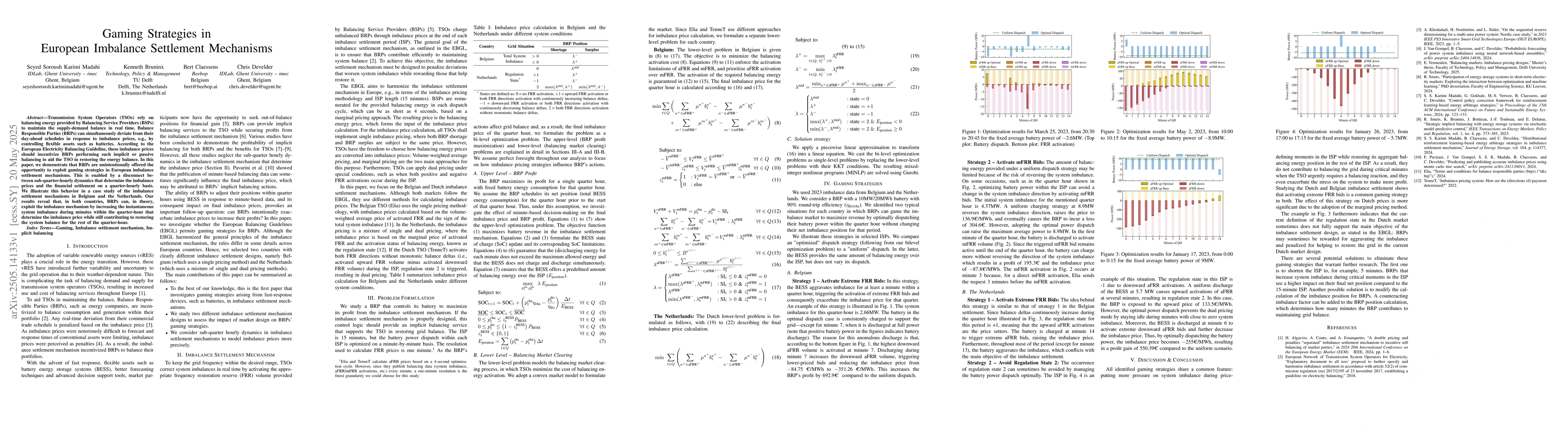Researchers found that Balance Responsible Parties (BRPs) in European imbalance settlement mechanisms can exploit gaming strategies to increase their earnings by manipulating the timing of energy supply.