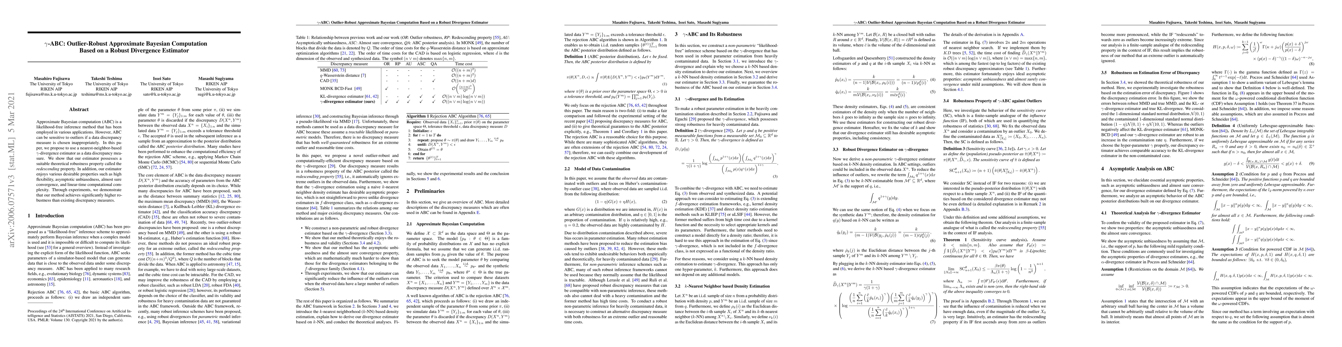 This paper proposes a novel $\gamma$-ABC method using a robust $\gamma$-divergence estimator to enhance the robustness of approximate Bayesian computation against outliers. The proposed estimator exhibits desirable properties including high flexibility, asymptotic unbiasedness, and linear-time computational complexity, leading to significantly higher robustness in experiments compared to existing methods.