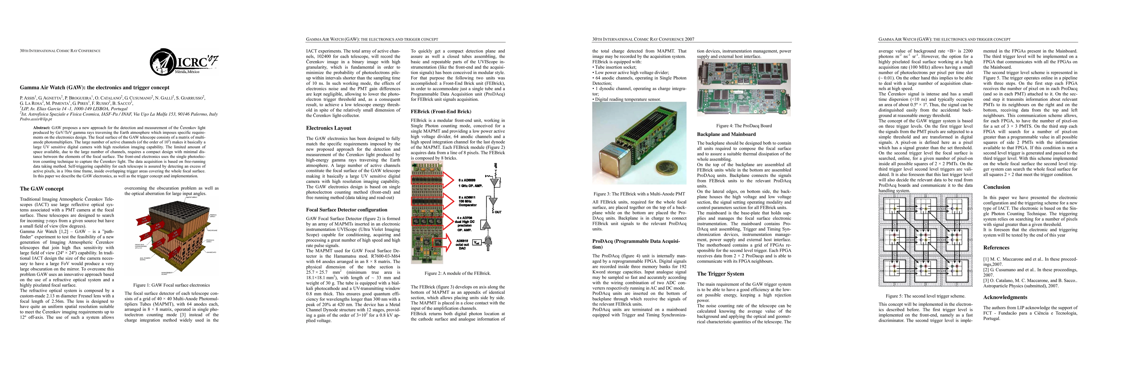 The Gamma Air Watch (GAW) project introduces a novel method for detecting Cherenkov light from gamma rays using a matrix of high-resolution photomultipliers, employing a compact front-end electronics design and a self-triggering mechanism to capture and process the data efficiently. The trigger concept relies on detecting an excess of active pixels within specific time frames to initiate data acquisition.