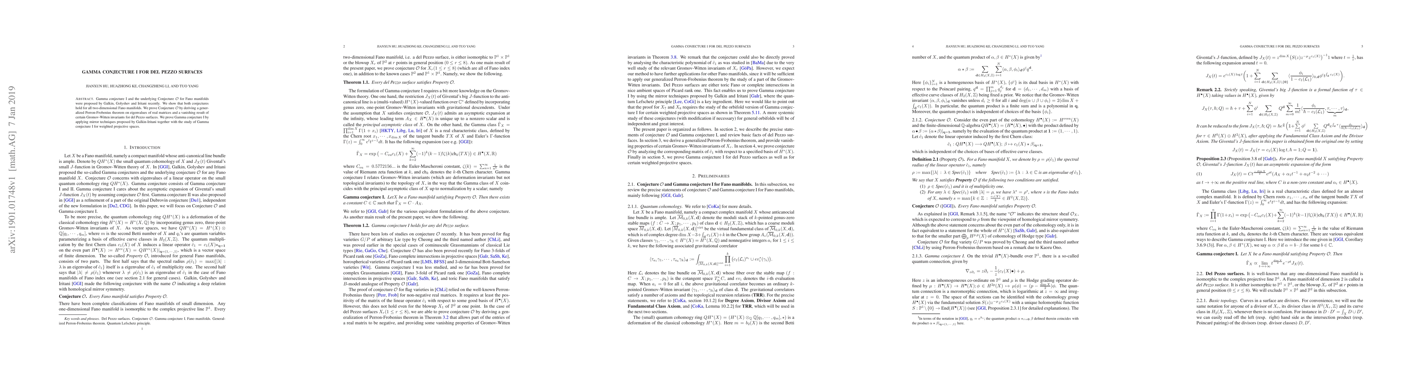 This paper proves Gamma conjecture I and Conjecture $\mathcal{O}$ for two-dimensional Fano manifolds by leveraging a generalized Perron-Frobenius theorem and vanishing results for Gromov-Witten invariants, along with mirror techniques and studies of weighted projective spaces.