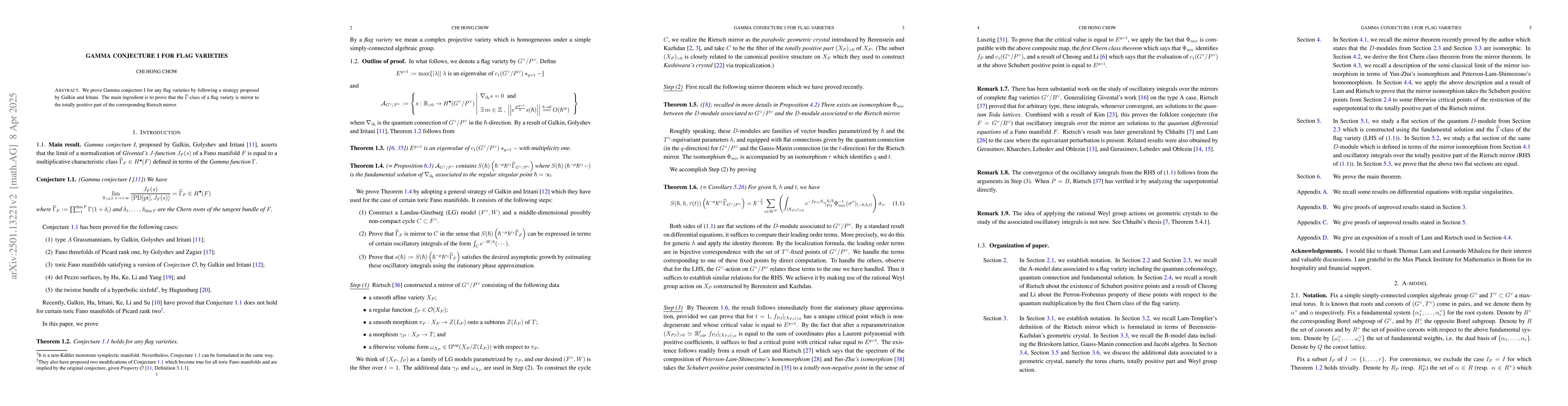 This paper proves Gamma conjecture I for any flag variety using a strategy proposed by Galkin and Iritani, establishing that the $\widehat{\Gamma}$-class of a flag variety mirrors the totally positive part of its Rietsch mirror.