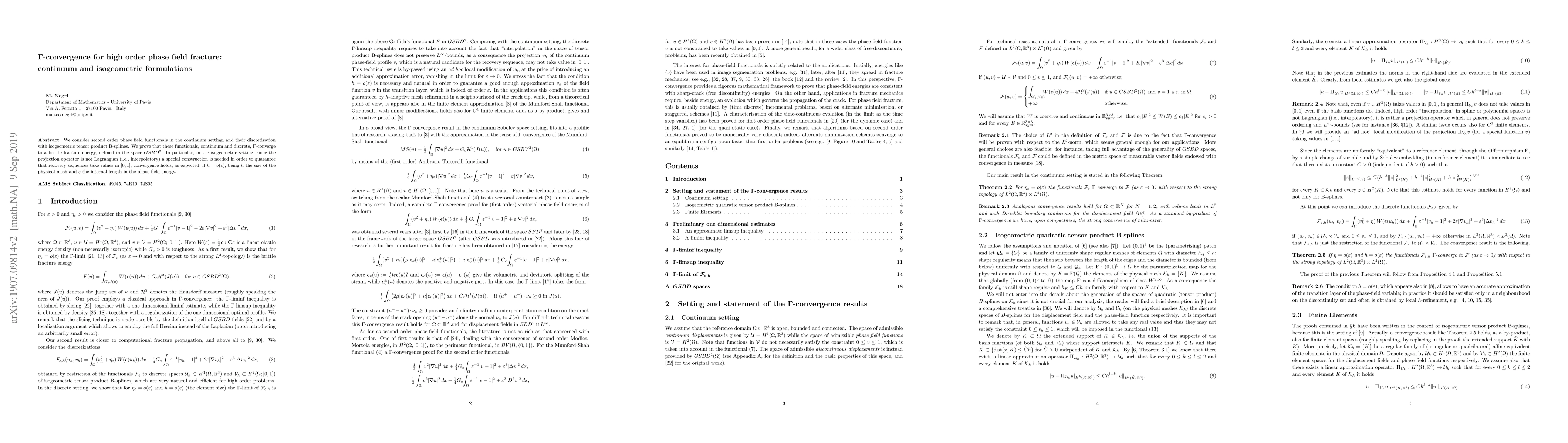 This research paper demonstrates that high-order phase field fracture functionals in both continuum and isogeometric formulations converge to a brittle fracture energy, with convergence conditions depending on the size of the physical mesh and internal length.