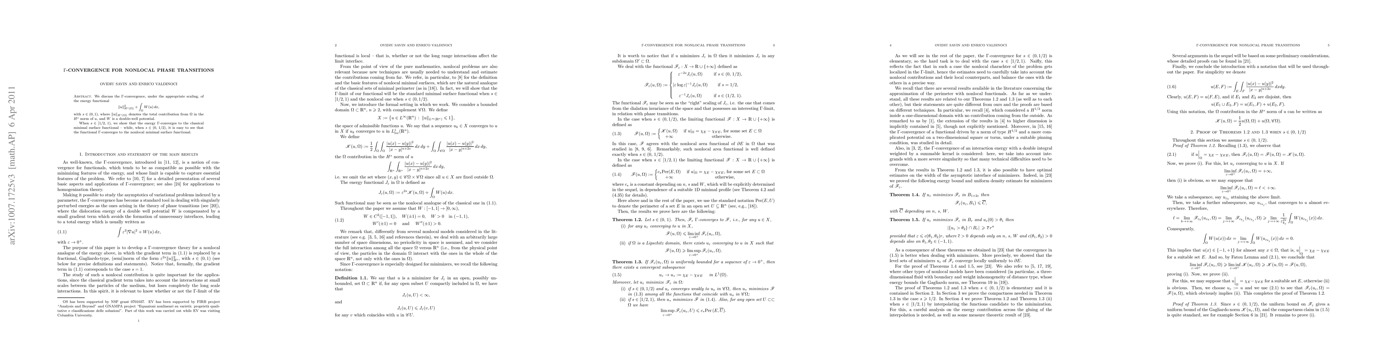 A study on nonlocal phase transitions reveals that a specific energy functional converges to classical or nonlocal minimal surface functionals depending on the value of s in the range (0, 1).