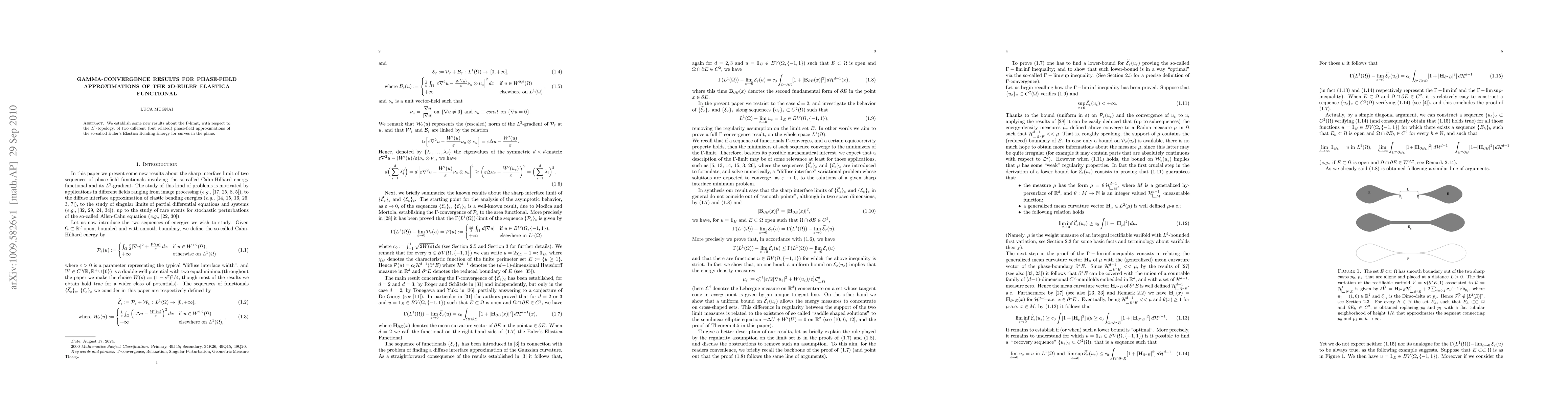 We establish some new results about the $\Gamma$-limit, with respect to the $L^1$-topology, of two different (but related) phase-field approximations of the so-called Euler's Elastica Bending Energy for curves in the plane.