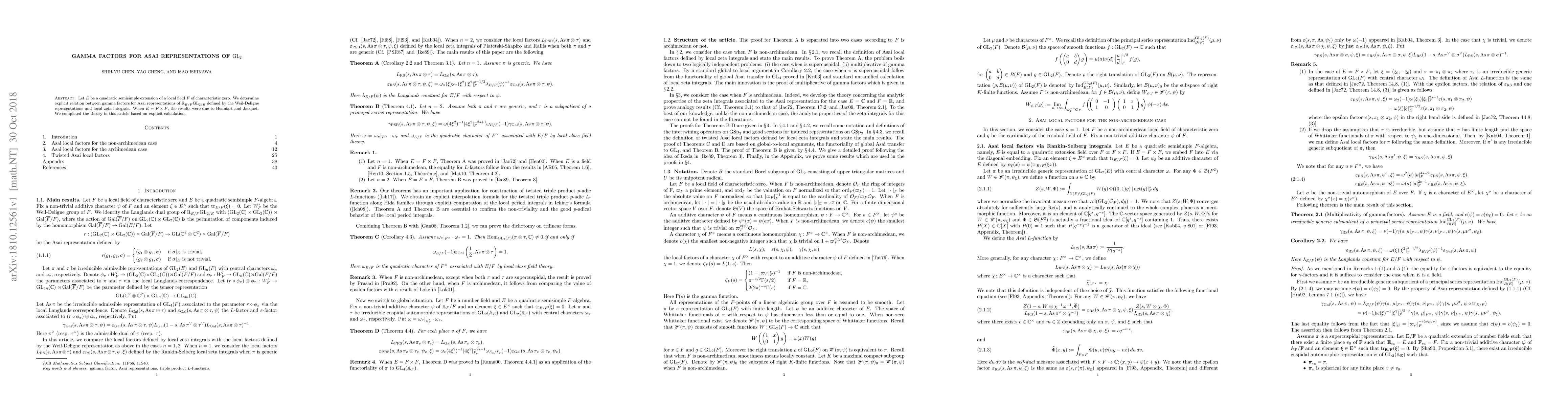This paper determines explicit relations between gamma factors for Asai representations of $R_{E/F}{\rm GL}_{2/E}$ using Weil-Deligne representations and local zeta integrals, extending prior results by Henniart and Jacquet through detailed calculations.