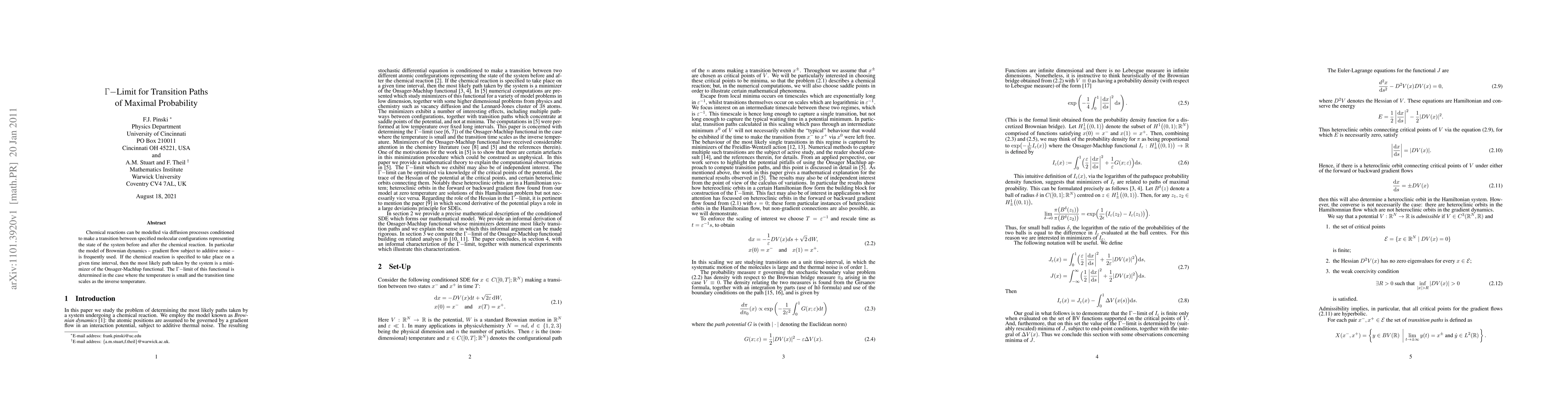 Chemical reactions can be modelled via diffusion processes conditioned to make a transition between specified molecular configurations representing the state of the system before and after the chemical reaction. In particular the model of Brownian dynamics - gradient flow subject to additive noise - is frequently used. If the chemical reaction is specified to take place on a given time interval, then the most likely path taken by the system is a minimizer of the Onsager-Machlup functional. The Gamma limit of this functional is determined in the case where the temperature is small and the transition time scales as the inverse temperature