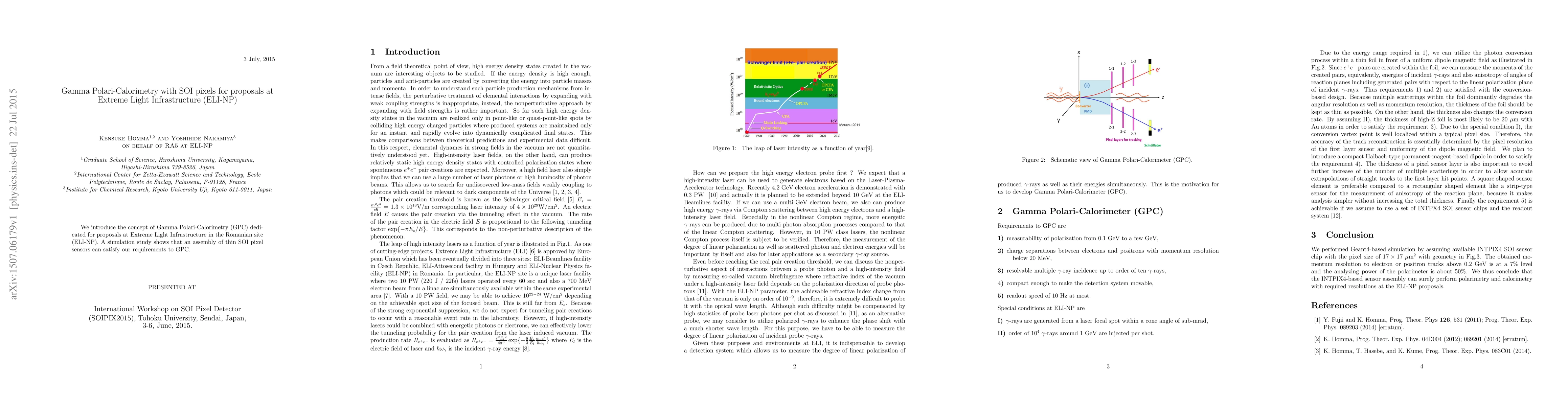 Summary: This paper proposes Gamma Polari-Calorimetry (GPC) for the Extreme Light Infrastructure in Romania (ELI-NP), demonstrating through simulation that an array of thin SOI pixel sensors can meet the necessary GPC requirements.