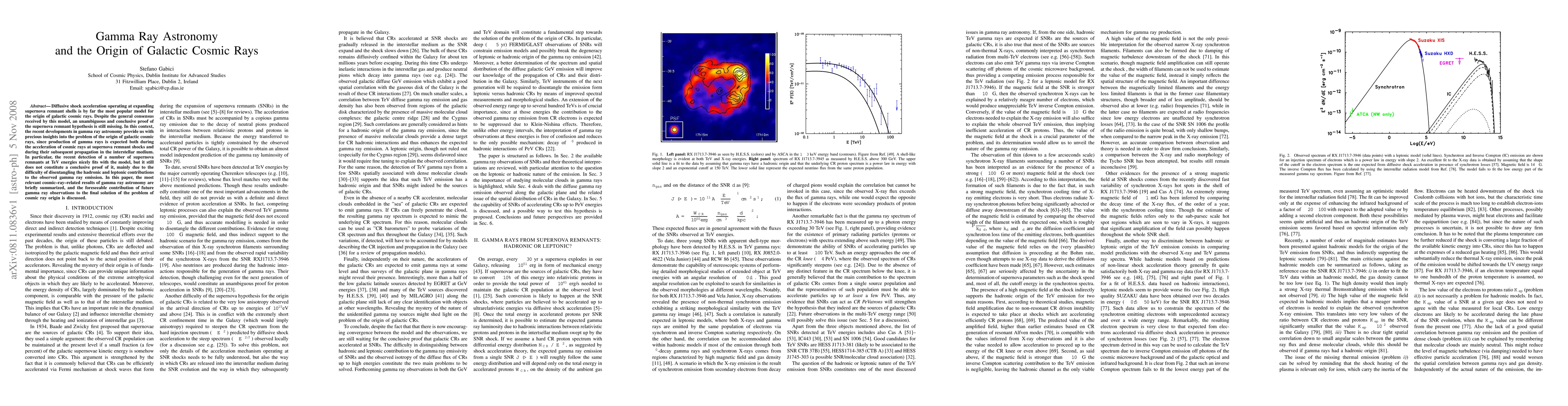 This paper reviews the role of gamma ray astronomy in understanding the origin of galactic cosmic rays, emphasizing the diffusive shock acceleration model in supernova remnants. While recent TeV gamma ray detections support the model, conclusive proof remains elusive due to challenges in distinguishing between hadronic and leptonic emission sources.