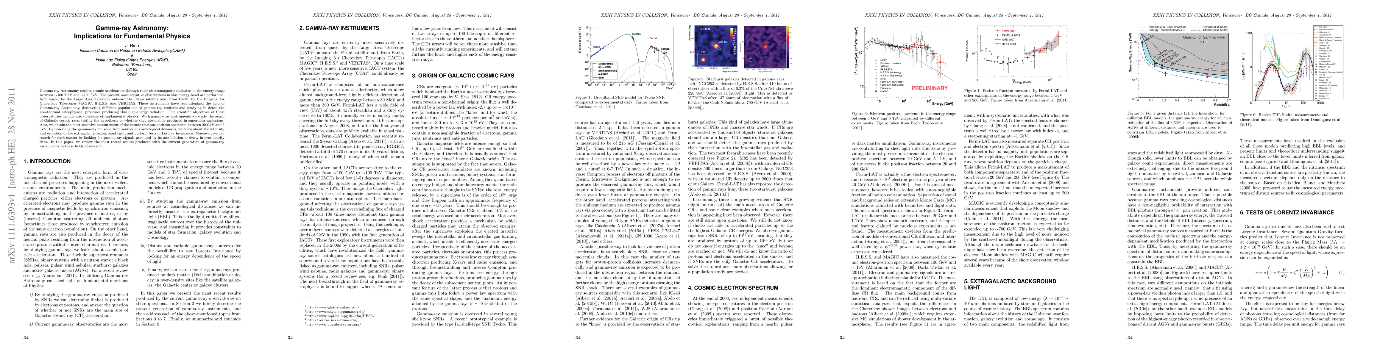This paper reviews recent advancements in Gamma-ray Astronomy using instruments like the Fermi Large Area Telescope and ground-based Cherenkov telescopes, focusing on discoveries of gamma-ray emitters and implications for fundamental physics, including cosmic ray origins, dark matter searches, and tests of Lorentz Invariance.