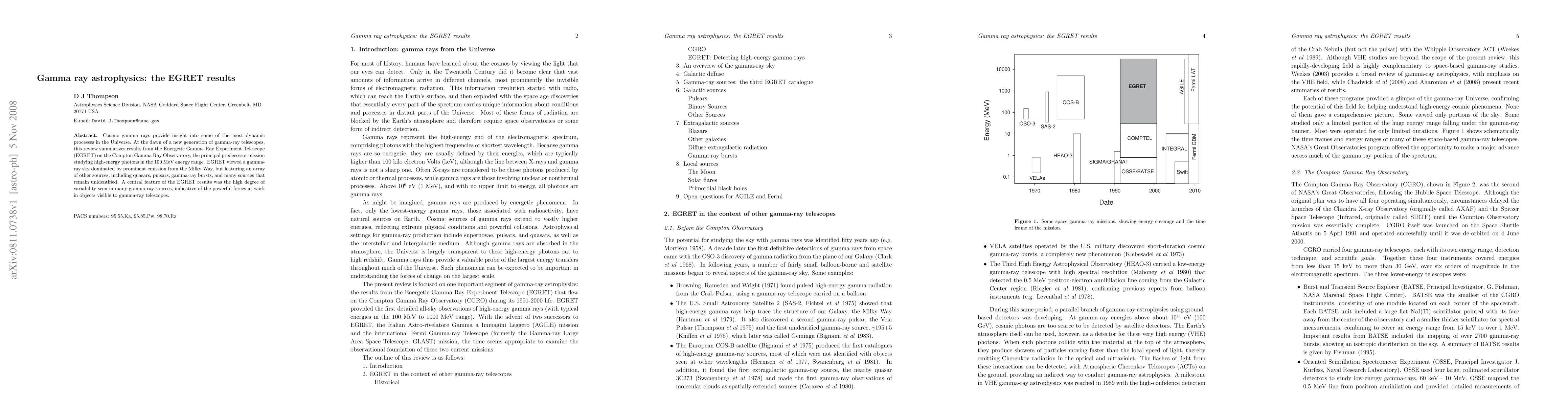Cosmic gamma rays provide insight into some of the most dynamic processes in the Universe. At the dawn of a new generation of gamma-ray telescopes, this review summarizes results from the Energetic Gamma Ray Experiment Telescope (EGRET) on the Compton Gamma Ray Observatory, the principal predecessor mission studying high-energy photons in the 100 MeV energy range. EGRET viewed a gamma-ray sky dominated by prominent emission from the Milky Way, but featuring an array of other sources, including quasars, pulsars, gamma-ray bursts, and many sources that remain unidentified. A central feature of the EGRET results was the high degree of variability seen in many gamma-ray sources, indicative of the powerful forces at work in objects visible to gamma-ray telescopes.