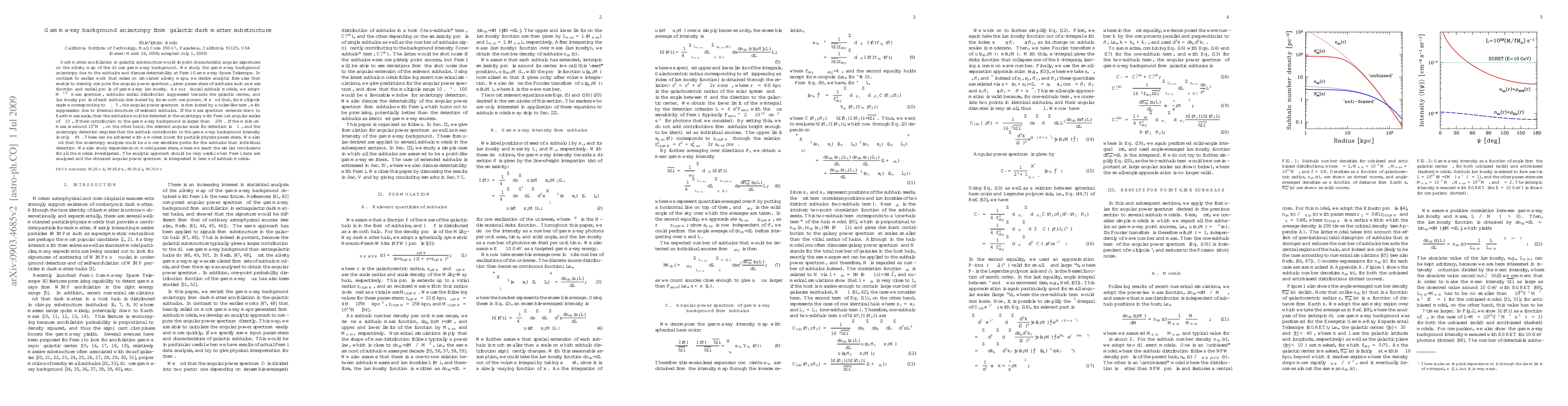 This paper investigates the gamma-ray background anisotropy caused by dark matter annihilation in galactic substructures, using analytic models to compute the angular power spectrum. It finds that Fermi could detect subhalos if their contribution to the gamma-ray background exceeds 20% at angular scales of ~10 deg, or 4% at ~1 deg, depending on their mass.