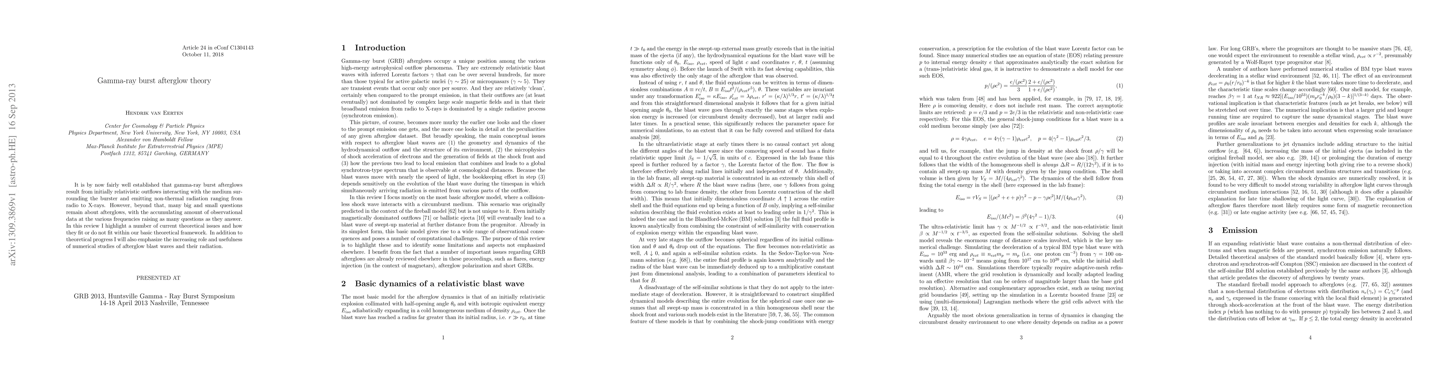 This paper reviews the current theoretical framework for gamma-ray burst afterglows, focusing on the interaction of relativistic outflows with the surrounding medium and the emission of non-thermal radiation. It highlights unresolved questions and the growing importance of numerical simulations in understanding afterglow blast waves and their radiation.