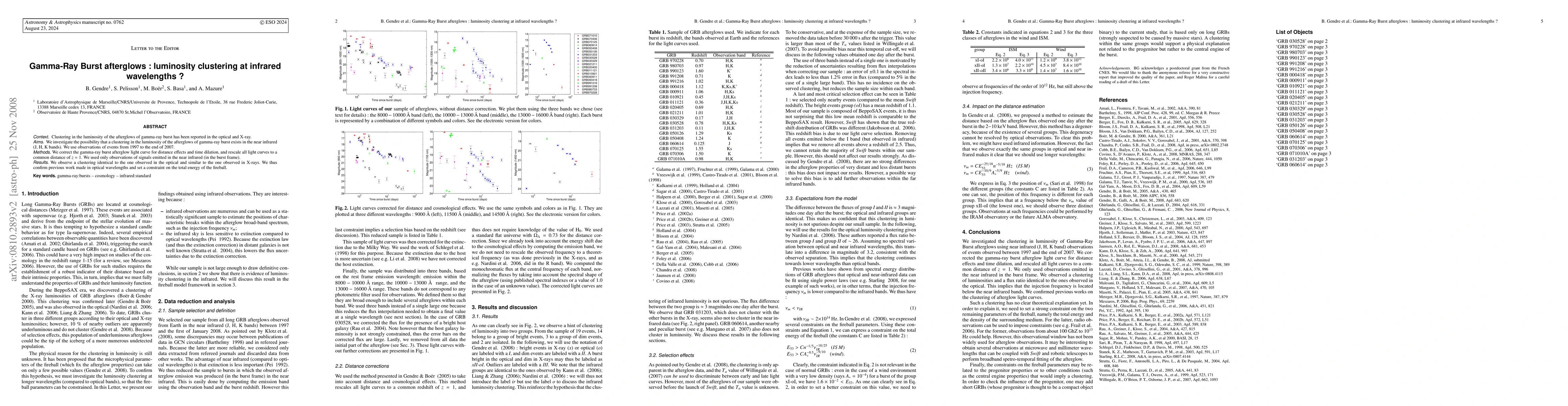 This study investigates whether gamma-ray burst afterglows exhibit luminosity clustering in near-infrared wavelengths, confirming previous findings in optical and X-ray. The analysis, spanning from 1997 to 2007, reveals similar clustering in the near-infrared, supporting the existence of this phenomenon across different wavelengths and constraining the total energy of the fireball.