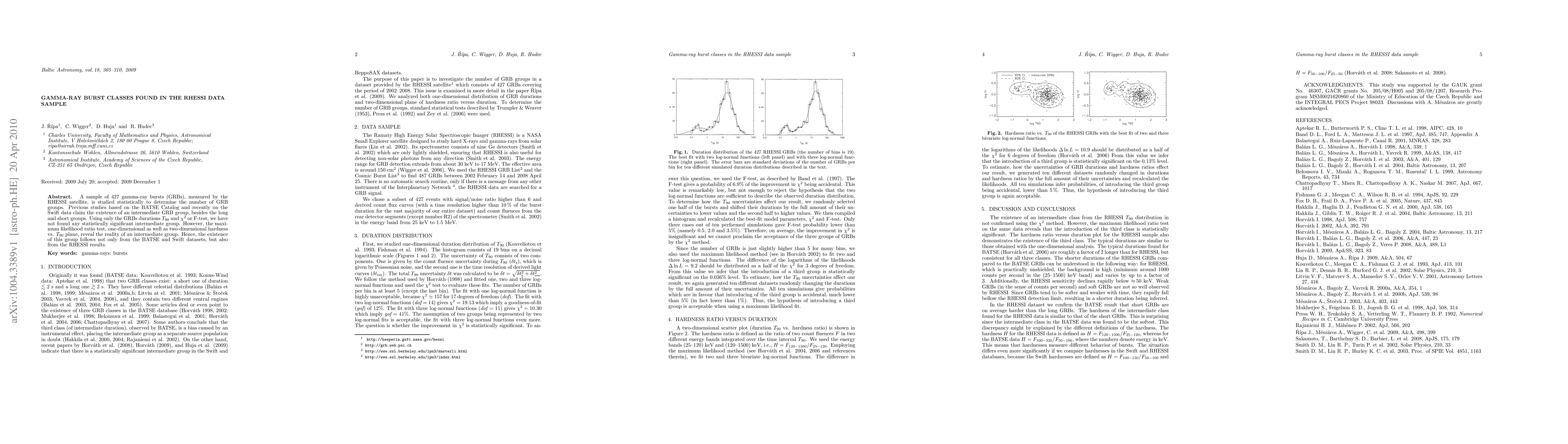 This study of 427 GRBs from RHESSI data didn't find an intermediate GRB group using duration and statistical tests. However, the maximum likelihood ratio test and hardness vs. T90 plane analyses revealed such a group, supporting findings from BATSE and Swift datasets.