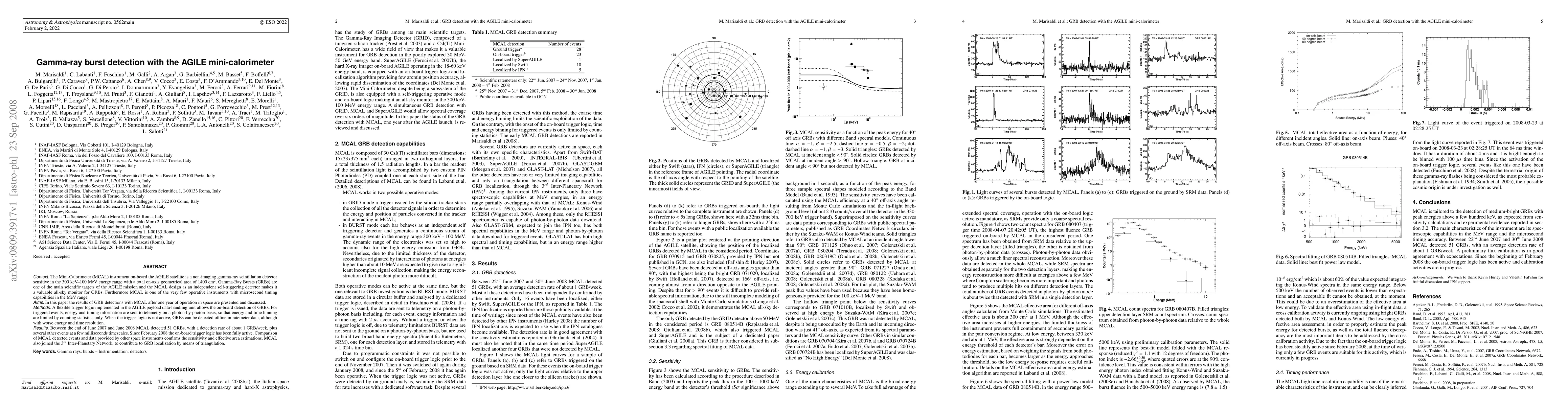The AGILE satellite's Mini-Calorimeter (MCAL) detected 51 Gamma-ray Bursts (GRBs) in a year, with a rate of about one per week. MCAL, having microsecond timing capabilities, also contributed to GRB localization via the 3rd Inter-Planetary Network.