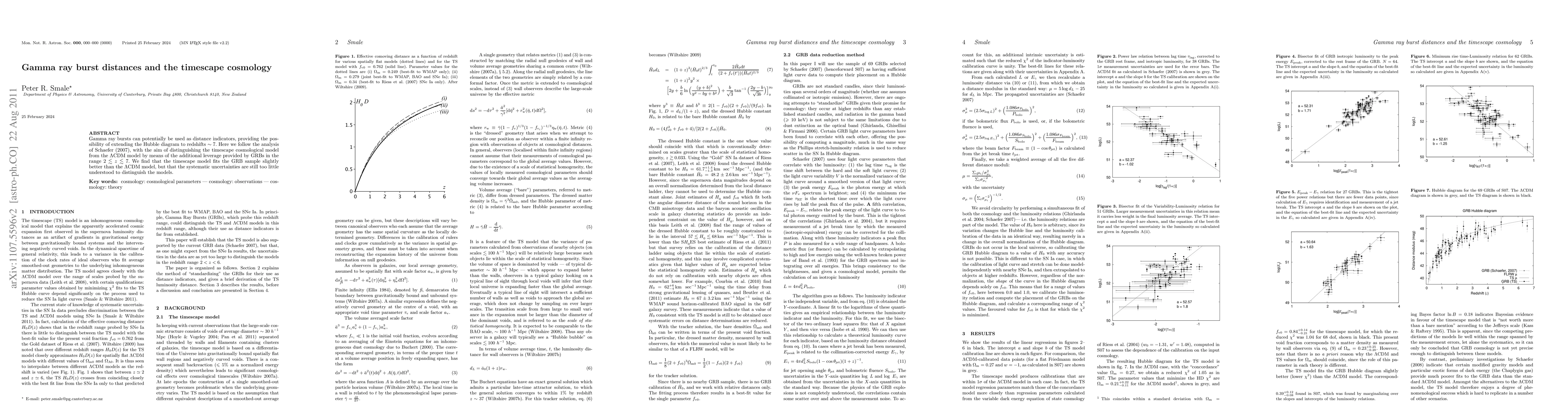 Gamma ray bursts can potentially be used as distance indicators, providing the possibility of extending the Hubble diagram to redshifts ~7. Here we follow the analysis of Schaefer (2007), with the aim of distinguishing the timescape cosmological model from the \LambdaCDM model by means of the additional leverage provided by GRBs in the range 2 < z < 7. We find that the timescape model fits the GRB sample slightly better than the \LambdaCDM model, but that the systematic uncertainties are still too little understood to distinguish the models.