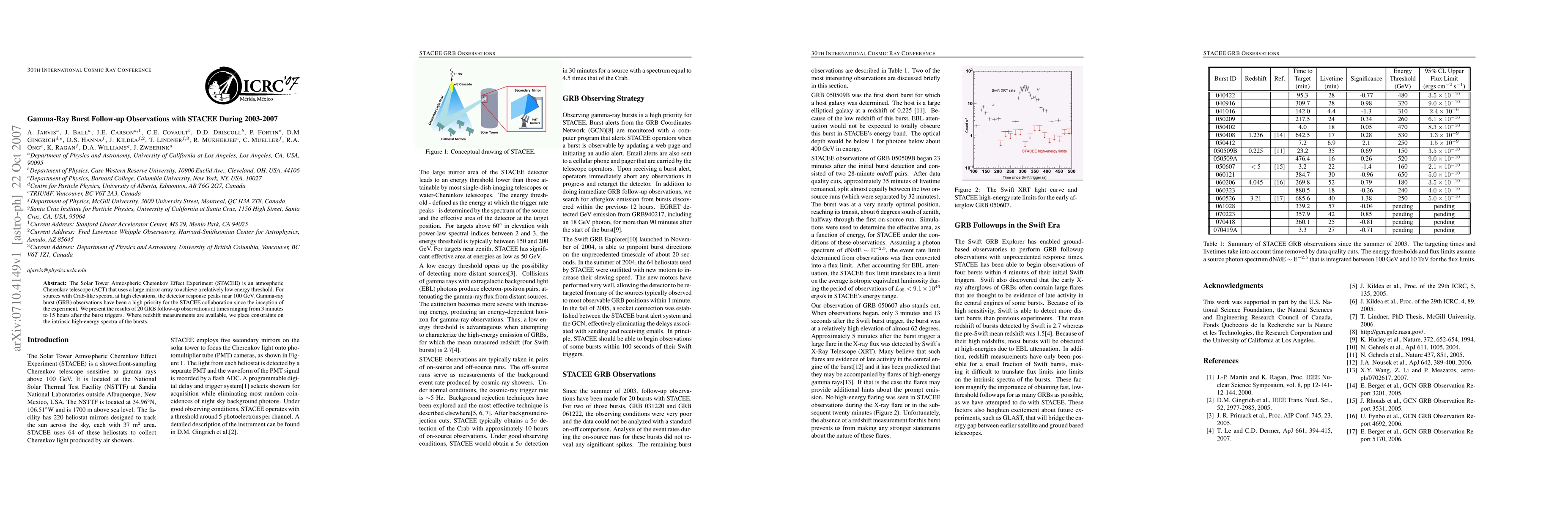 The Solar Tower Atmospheric Cherenkov Effect Experiment (STACEE) is an atmospheric Cherenkov telescope (ACT) that uses a large mirror array to achieve a relatively low energy threshold. For sources with Crab-like spectra, at high elevations, the detector response peaks near 100 GeV. Gamma-ray burst (GRB) observations have been a high priority for the STACEE collaboration since the inception of the experiment. We present the results of 20 GRB follow-up observations at times ranging from 3 minutes to 15 hours after the burst triggers. Where redshift measurements are available, we place constraints on the intrinsic high-energy spectra of the bursts.