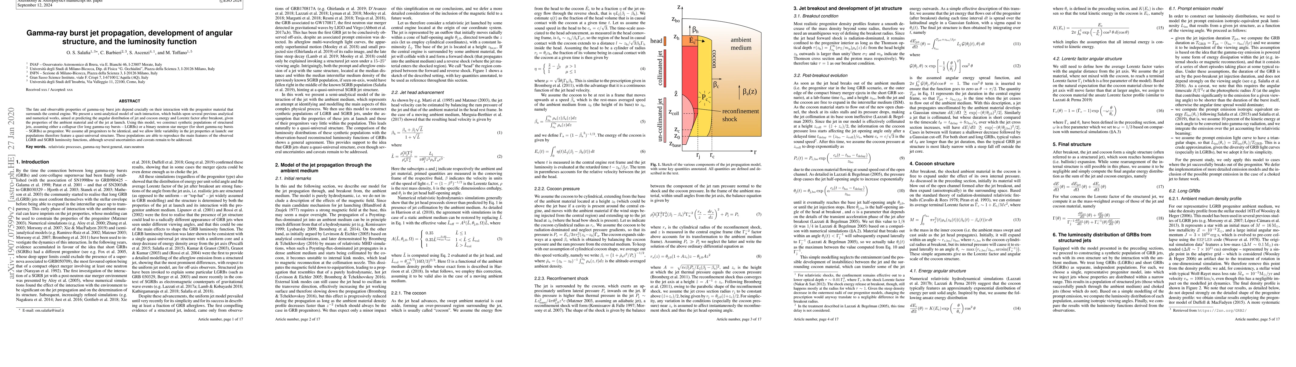 This paper presents a semi-analytical model to predict the angular structure and luminosity function of gamma-ray burst jets based on their interaction with progenitor material. The model reproduces the main features of observed luminosity functions for long and short gamma-ray bursts, though uncertainties remain.